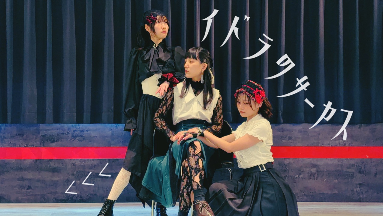 <span style="color: #ff0000; font-size: 18px;">『ほら舞台に上がりなよ』</span><br><br>ムムム第四弾!ハトムギさん主催のイベントで披露した演目です!<br>本家に倣い、ゴシックGIRLの仮装をしてみました。<br>差し色が赤×緑で図らずも季節ピッタリ✨1日遅れのメリクリ✨<br><br>*楽曲本家様 : <a href="https://www.nicovideo.jp/watch/sm20765934" class="watch">sm20765934</a><br>*使用音源様 : <a href="https://www.nicovideo.jp/watch/sm25763021" class="watch">sm25763021</a><br>*振付本家様 : <a href="https://www.nicovideo.jp/watch/sm32458155" class="watch">sm32458155</a><br><br>✦┈┈┈┈┈┈┈┈┈┈┈┈┈┈┈✦<br><br>《踊ってる人》(サムネ右から)<br>*柚菜(<a href="https://www.nicovideo.jp/mylist/63931832" target="_blank" rel="noopener">mylist/63931832</a>)<br>X:<a href="https://x.com/yuzuna6z" target="_blank" rel="noopener nofollow">https://x.com/yuzuna6z</a><br>*ハトムギハラスメント(<a href="https://www.nicovideo.jp/mylist/66645092" target="_blank" rel="noopener">mylist/66645092</a>)<br>X:<a href="https://x.com/aw_hw_02" target="_blank" rel="noopener nofollow">https://x.com/aw_hw_02</a><br>*ma(i)ca(<a href="https://www.nicovideo.jp/mylist/75721038" target="_blank" rel="noopener">mylist/75721038</a>)<br>X:<a href="https://x.com/maca_2400" target="_blank" rel="noopener nofollow">https://x.com/maca_2400</a><br><br>✦┈┈┈┈┈┈┈┈┈┈┈┈┈┈┈✦<br><br><span style="color: #b7b7b7; font-size: 10px;">ご覧いただきありがとうございます ^^<br>Thank you for watching :)</span>