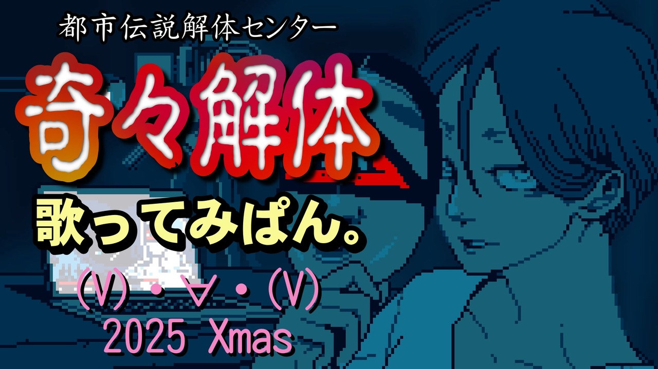 あざみ「『都市伝説解体センター』をクリアせずに年を越してしまうと、行方不明になってしまうという噂が……!」 <br>ジャスミン「なにそれ、そんな噂あんの? ま、あたしはクリアしてあるからカンケーないケド……」<br> (V)・∀・(V)「……(クリアしておいてよかったー)」 <br><br>(V)・∀・(V)かにぱん。です、こんぱんわ。 <br>クリスマス動画2025が降臨! <br><strong>『都市伝説解体センター』のエンディングテーマ『奇々解体』</strong>をカバーしてみました! <br>ラップの部分は低かったので(V)・∀・(V)さんにお願いしました。 <br>それに、サビも高かったので(V)・∀・(V)さんに唄ってもらいました。<br> 残りは全部(V)・∀・(V)で唄っていて、大体10人くらいの(V)・∀・(V)で唄っています。 <br>動画の編集については、『都市伝説解体センター』をクリアしたという(V)・∀・(V)さんが頑張ってくれました! <br>そして、この動画には、ゲーム本編のネタバレになるような描写は含まれていません。これを見たらゲームを遊んでね!<br><br>実況プレイ動画シリーズはこちら:<a href="https://www.nicovideo.jp/series/540294" target="_blank" rel="noopener">series/540294</a><br>この動画に関するブログ記事:<a href="https://kanipan.diary.to/archives/52396405.html" target="_blank" rel="noopener nofollow">https://kanipan.diary.to/archives/52396405.html</a><br><br>■楽曲情報 『奇々解体』 <br>作詞・作曲・編曲:MURASAKI <br>オリジナル歌手:かたたかんな <br>公式MV(クリア後視聴推奨): <a href="https://www.youtube.com/watch?v=Kk-2sm1yXNk" target="_blank" rel="noopener nofollow">https://www.youtube.com/watch?v=Kk-2sm1yXNk</a><br><br>2901本目の動画<br><br /><リンク集><br>ブログ:<a href="http://kanipan.diary.to/" target="_blank" rel="noopener nofollow">http://kanipan.diary.to/</a> TW:@kanipan666<br>FANBOX:<a href="https://kanipan666.fanbox.cc/" target="_blank" rel="noopener nofollow">https://kanipan666.fanbox.cc/</a><br>YT:<a href="http://www.youtube.com/user/kanipan666" target="_blank" rel="noopener nofollow">http://www.youtube.com/user/kanipan666</a><br>YT2(game):<a href="https://www.youtube.com/user/KanipanGame/" target="_blank" rel="noopener nofollow">https://www.youtube.com/user/KanipanGame/</a>
