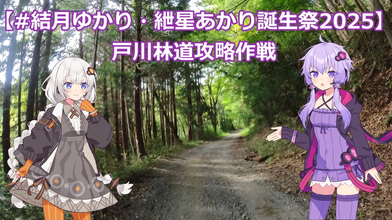 カブ一族とは言えど、所詮は50ccの原付。<br>そんな原付で、果敢にも神奈川県の秦野にある戸川林道へ突撃して、<br>結月ゆかりと紲星あかりの誕生日を祝います。<br><br>2025/12/22 21:40<br>大変失礼いたしました。<br>「あかりちゃん」とすべきところが、「あかねちゃん」になっていたところを修正しました。<br><br>以下、使用させていただきております素材です。<br><br>立ち絵(ゆかりさん):みわしいば様<br><a href="https://seiga.nicovideo.jp/seiga/im11560612" target="_blank" rel="noopener nofollow">https://seiga.nicovideo.jp/seiga/im11560612</a><br>立ち絵(あかりちゃん):みわしいば様<br><a href="https://seiga.nicovideo.jp/seiga/im11661532" target="_blank" rel="noopener nofollow">https://seiga.nicovideo.jp/seiga/im11661532</a><br><br>・ボイス:VOICEROID2 結月ゆかり<br> :VOICEROID2 紲星あかり<br><br>使用楽曲(ニコニ・コモンズより)<br>ドタバタコミカル (作曲:Yamazaki様)<br><a href="https://commons.nicovideo.jp/works/nc218267" target="_blank" rel="noopener nofollow">https://commons.nicovideo.jp/works/nc218267</a><br><br><a target="_blank" href="https://qa.nicovideo.jp/faq/show/19424?site_domain=default" style="font-size: 13px;color: #657586; text-decoration: underline; line-height: 1.4">この動画は投稿者によって修正されました</a>