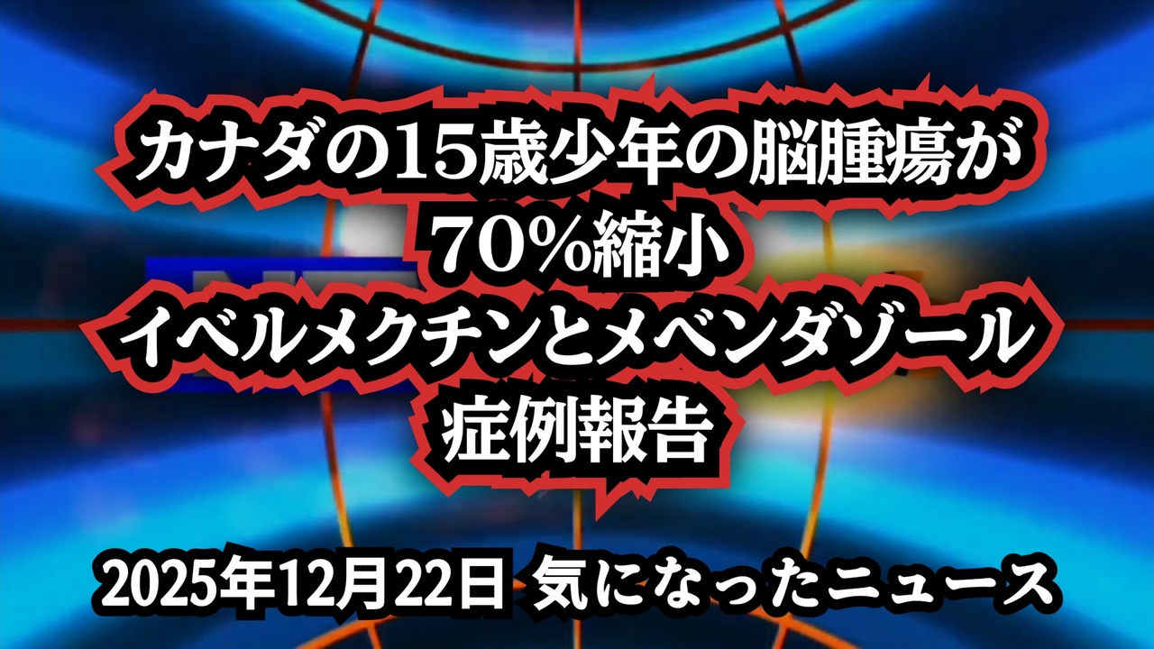 ◆15歳少年の脳腫瘍が70%縮小──イベルメクチンとメベンダゾール症例報告の全記録<br><br>15歳少年の脳腫瘍が激減した理由<br><br>あらすじ<br>15歳のカナダ人少年。<br>高悪性度グリオーマという極めて厳しい診断を受け、外科手術と放射線治療に臨んだ。<br>その治療過程で併用されていた、ある既存薬の組み合わせが、医療関係者や研究者の間で静かに注目を集めている。<br>本編では、治療開始から2か月後に報告された画像所見、放射線治療との関係、既に存在する臨床試験や特許情報など、公開情報を時系列で整理する。<br>賛否が激しく分かれるテーマだからこそ、感情論ではなく、何が起きたのかだけを丁寧に追う。<br>この症例は、単なる成功談なのか。<br>それとも、見過ごされてきた可能性の一端なのか。<br>判断するのは、視聴者自身である。<br><br>◆今回の台本&詳細<a href="https://keiichiro8140.hatenablog.com/entry/25122111333999" target="_blank" rel="noopener nofollow">https://keiichiro8140.hatenablog.com/entry/25122111333999</a><br><br>◆これまでの動画<a href="https://x.gd/sPXoJ" target="_blank" rel="noopener nofollow">https://x.gd/sPXoJ</a><br><br>◆もしも(BAN)の時のためのマイリンク集<a href="https://lit.link/K-16_News44" target="_blank" rel="noopener nofollow">https://lit.link/K-16_News44</a><br><br>イベルメクチン<br>がん治療<br>ウイリアム・マキス博士<br>フェンベンダゾール<br>メベンダゾール<br>脳腫瘍<br>小児グリオーマ<br>膠芽腫代替治療<br>がん症例報告<br>コロナワクチン2回接種<br><br>ご覧いただきありがとうございます<br>m(_ _)m<br><br>気になったニュース 2025/12/22<br><br />著作権、肖像権に配慮して作成しております。<br><br>◆気になったニュースの台本!?<br>メモ代わりに作った台本をそのままあげてます<br><a href="https://keiichiro8140.hatenablog.com/." target="_blank" rel="noopener nofollow">https://keiichiro8140.hatenablog.com/.</a><br><br><br>ここからはシリーズ紹介<br><br><br>◆ ワクチン解毒・デトックス<br><a href="https://x.gd/fZweg" target="_blank" rel="noopener nofollow">https://x.gd/fZweg</a><br><br>◆ウイリアム・マキス博士のがん治療(イベルメクチン・フェンベンダゾール等)<br><a href="https://x.gd/AtFYS" target="_blank" rel="noopener nofollow">https://x.gd/AtFYS</a><br><br>◆予防接種健康被害救済制度<br><a href="https://x.gd/0xK9x" target="_blank" rel="noopener nofollow">https://x.gd/0xK9x</a><br><br>◆気になったニュース #1501~<br><br>◆ 【ショートver】気になったニュース<br><a href="https://x.gd/7MxXC" target="_blank" rel="noopener nofollow">https://x.gd/7MxXC</a><br><br>◆ 気になったニュース #1001~<br><a href="https://x.gd/Lp8gv" target="_blank" rel="noopener nofollow">https://x.gd/Lp8gv</a><br><br>◆ 気になったニュース #501~<br><a href="https://x.gd/EmbS4" target="_blank" rel="noopener nofollow">https://x.gd/EmbS4</a><br><br>◆ 気になったニュース #1~#500<br><a href="https://x.gd/uPhNb" target="_blank" rel="noopener nofollow">https://x.gd/uPhNb</a><br><br>◆ X(旧Twitter)・テレグラムで気になった情報<br><a href="https://x.gd/YG6FT" target="_blank" rel="noopener nofollow">https://x.gd/YG6FT</a><br><br>◆ 日比谷5万人パレードデ⚪生放送アーカイブ動画<br><a href="https://x.gd/3CHJv" target="_blank" rel="noopener nofollow">https://x.gd/3CHJv</a><br><br>◆日比谷5万人パレード⚪モのマイリスト作ってみました<br><a href="https://nico.ms/mylist/76828848?ref=sp_other" target="_blank" rel="noopener nofollow">https://nico.ms/mylist/76828848?ref=sp_other</a><br><br>◆3.30 令和の百姓⚪⚪<br><a href="https://www.nicovideo.jp/series/511791?ref=garage_share_other" target="_blank" rel="noopener nofollow">https://www.nicovideo.jp/series/511791?ref=garage_share_other</a><br><br>◆ 及川幸久さんの【XNEWS】シリーズ<br><a href="https://x.gd/3k78K" target="_blank" rel="noopener nofollow">https://x.gd/3k78K</a><br><br>◆これまでの動画<a href="https://x.gd/sPXoJ" target="_blank" rel="noopener nofollow">https://x.gd/sPXoJ</a><br><br>◆もしも(BAN)の時のためのマイリンク集<a href="https://lit.link/K-16_News44" target="_blank" rel="noopener nofollow">https://lit.link/K-16_News44</a><br><br>