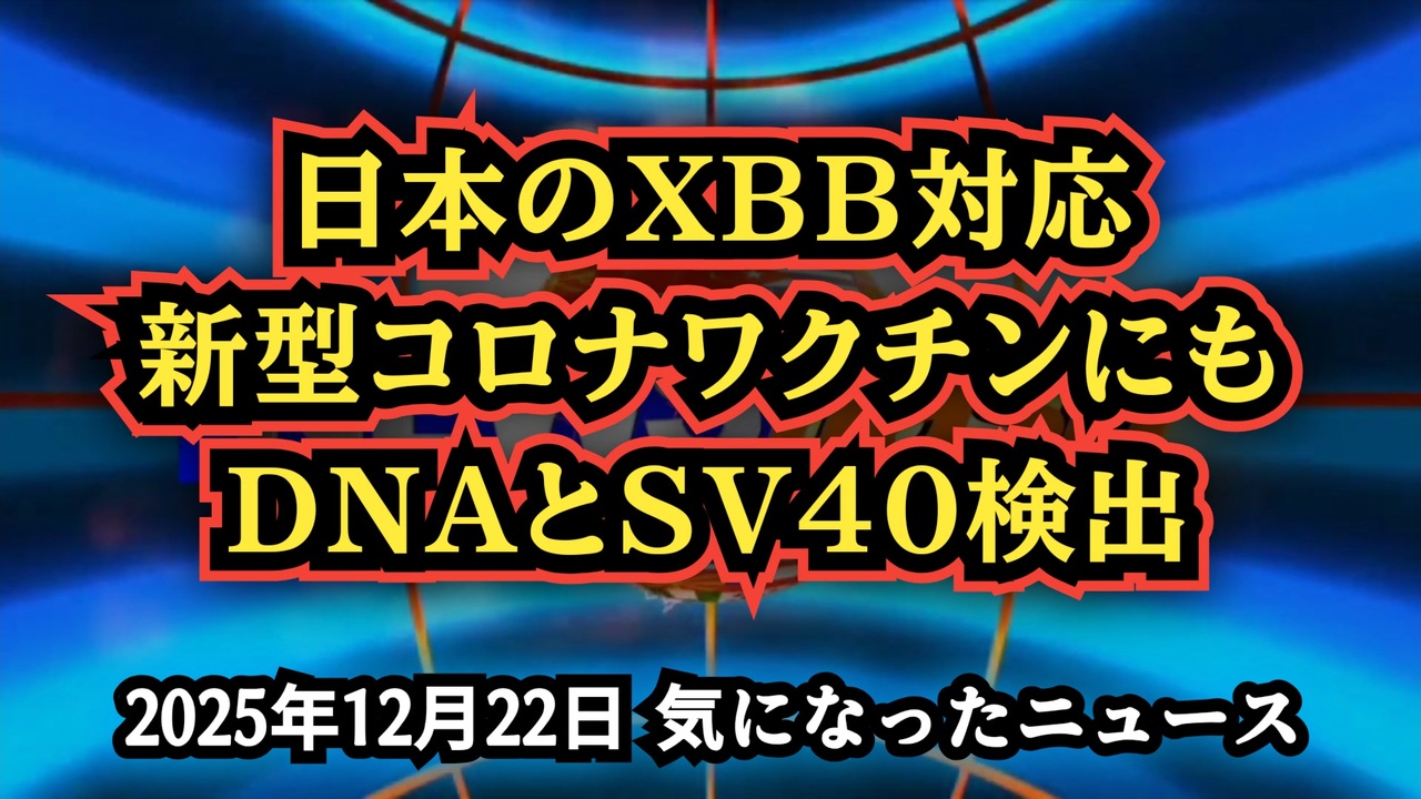 ◆日本のXBB対応mRNAワクチン検査でDNAとSV40配列が検出<br><br>日本のXBB対応コロナワクチンにも<br>DNAとSV40検出<br><br>あらすじ<br>日本で使用されているXBB対応型mRNAワクチンをめぐり、海外研究者による検査データが注目を集めている。<br> 本動画では、公開されている画像資料をもとに、どのような検査が行われ、何が確認されたのかを、専門用語をかみ砕きながら整理する。<br>qPCR検査とは何か。<br> 検査対象となった遺伝子配列とは何を意味するのか。<br> そして、複数ロット・複数時期の製品が並んで示されている理由とは。<br><br>◆今回の台本&詳細<a href="https://keiichiro8140.hatenablog.com/entry/251222222" target="_blank" rel="noopener nofollow">https://keiichiro8140.hatenablog.com/entry/251222222</a><br><br>◆これまでの動画<a href="https://x.gd/sPXoJ" target="_blank" rel="noopener nofollow">https://x.gd/sPXoJ</a><br><br>◆もしも(BAN)の時のためのマイリンク集<a href="https://lit.link/K-16_News44" target="_blank" rel="noopener nofollow">https://lit.link/K-16_News44</a><br><br>XBB対応ワクチン<br>mRNAワクチン<br>DNA汚染<br>SV40プロモーター<br>新型コロナワクチン<br>ロット<br>mRNAワクチン<br>ケビン・マッカーナン<br>XBBワクチン<br>ワクチン製造工程<br>遺伝子配列検出<br><br>ご覧いただきありがとうございます<br>m(_ _)m<br><br>気になったニュース 2025/12/22<br><br />著作権、肖像権に配慮して作成しております。<br><br>◆気になったニュースの台本!?<br>メモ代わりに作った台本をそのままあげてます<br><a href="https://keiichiro8140.hatenablog.com/." target="_blank" rel="noopener nofollow">https://keiichiro8140.hatenablog.com/.</a><br><br><br>ここからはシリーズ紹介<br><br><br>◆ ワクチン解毒・デトックス<br><a href="https://x.gd/fZweg" target="_blank" rel="noopener nofollow">https://x.gd/fZweg</a><br><br>◆ウイリアム・マキス博士のがん治療(イベルメクチン・フェンベンダゾール等)<br><a href="https://x.gd/AtFYS" target="_blank" rel="noopener nofollow">https://x.gd/AtFYS</a><br><br>◆予防接種健康被害救済制度<br><a href="https://x.gd/0xK9x" target="_blank" rel="noopener nofollow">https://x.gd/0xK9x</a><br><br>◆気になったニュース #1501~<br><br>◆ 【ショートver】気になったニュース<br><a href="https://x.gd/7MxXC" target="_blank" rel="noopener nofollow">https://x.gd/7MxXC</a><br><br>◆ 気になったニュース #1001~<br><a href="https://x.gd/Lp8gv" target="_blank" rel="noopener nofollow">https://x.gd/Lp8gv</a><br><br>◆ 気になったニュース #501~<br><a href="https://x.gd/EmbS4" target="_blank" rel="noopener nofollow">https://x.gd/EmbS4</a><br><br>◆ 気になったニュース #1~#500<br><a href="https://x.gd/uPhNb" target="_blank" rel="noopener nofollow">https://x.gd/uPhNb</a><br><br>◆ X(旧Twitter)・テレグラムで気になった情報<br><a href="https://x.gd/YG6FT" target="_blank" rel="noopener nofollow">https://x.gd/YG6FT</a><br><br>◆ 日比谷5万人パレードデ⚪生放送アーカイブ動画<br><a href="https://x.gd/3CHJv" target="_blank" rel="noopener nofollow">https://x.gd/3CHJv</a><br><br>◆日比谷5万人パレード⚪モのマイリスト作ってみました<br><a href="https://nico.ms/mylist/76828848?ref=sp_other" target="_blank" rel="noopener nofollow">https://nico.ms/mylist/76828848?ref=sp_other</a><br><br>◆3.30 令和の百姓⚪⚪<br><a href="https://www.nicovideo.jp/series/511791?ref=garage_share_other" target="_blank" rel="noopener nofollow">https://www.nicovideo.jp/series/511791?ref=garage_share_other</a><br><br>◆ 及川幸久さんの【XNEWS】シリーズ<br><a href="https://x.gd/3k78K" target="_blank" rel="noopener nofollow">https://x.gd/3k78K</a><br><br>◆これまでの動画<a href="https://x.gd/sPXoJ" target="_blank" rel="noopener nofollow">https://x.gd/sPXoJ</a><br><br>◆もしも(BAN)の時のためのマイリンク集<a href="https://lit.link/K-16_News44" target="_blank" rel="noopener nofollow">https://lit.link/K-16_News44</a><br><br>