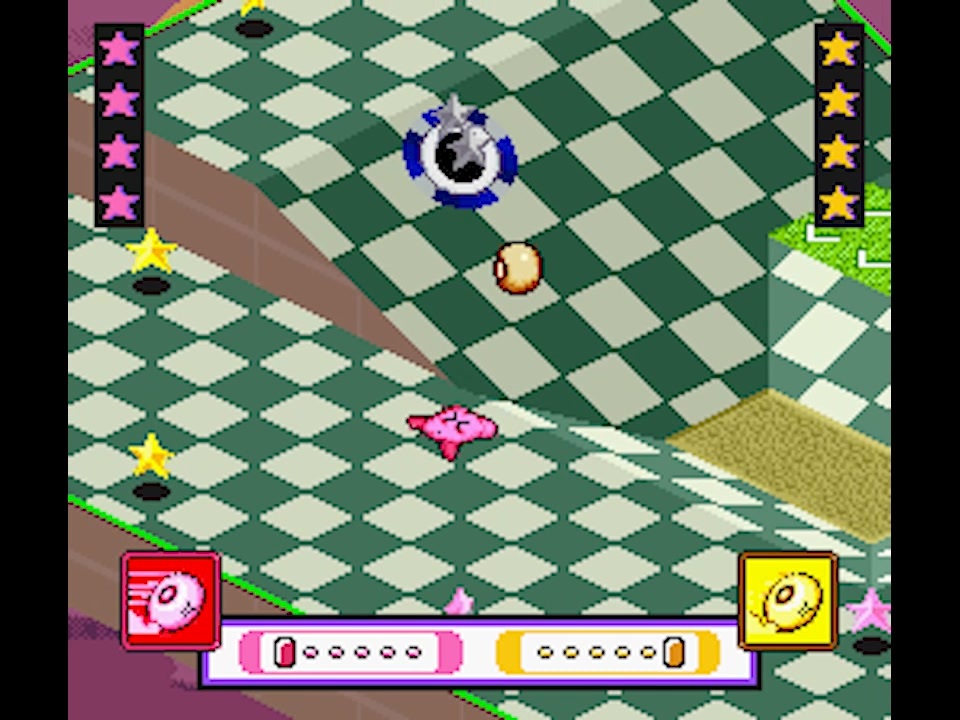ホイールは、横方向の坂道でも方向転換ができます。<br><br><原理><br><br>ホイールはダッシュパネルの力で方向が変わることがありますが、もともと進んでいた方向を覚えていて、バウンドすると再びその方向の力が加わり、もう一度同じ方向に走り出すことがあります。<br><br>残念ながら、無限ループを避けるために、進行方向に対して下り坂になっている場合は対策されているようですが、進行方向と平行に近い坂道の場合はその制約から逃れることができる様です。<br><br><br><参考文献><br><br>イナズマライダー(水切り型)<br><a href="https://www.nicovideo.jp/watch/sm45755734" target="_blank" rel="noopener nofollow">https://www.nicovideo.jp/watch/sm45755734</a><br><br /><br><br>★お知らせ★<br><br>最新の研究状況(他の方の結果のリツイートも含む)はX(旧Twitter)で報告しています。<br>気になる方は、こちらもフォローをお願いします!<br><br>なるしす@日本カービィボウル学会<br><a href="https://x.com/NarushisuKBBG" target="_blank" rel="noopener nofollow">https://x.com/NarushisuKBBG</a><br><br><br>アナログゲームの製作もやっています!<br><br>なるしす娯楽学会<br><a href="https://x.com/NarushisuGG" target="_blank" rel="noopener nofollow">https://x.com/NarushisuGG</a><br><br><br>カービィボウルは、Nintendo Switch Online で遊べます。<br>(2026年1月21日時点)<br><br>カービィボウル<br><a href="https://www.nintendo.com/jp/games/feature/nintendo-classics/s-2007_j/index.html" target="_blank" rel="noopener nofollow">https://www.nintendo.com/jp/games/feature/nintendo-classics/s-2007_j/index.html</a>