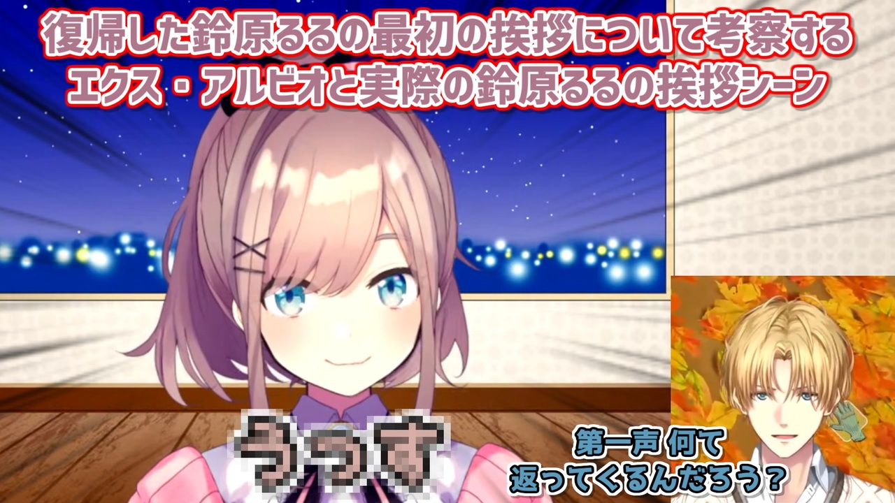 るるちゃんがこんるる以外を?まっさか~<br><br>本家参考動画<br>・鈴原るる<br>みんな...ただいまああああああ!!!!!!!!!!!!!!【にじさんじ/鈴原るる】<br><a href="https://youtu.be/bTya_V54feY" target="_blank" rel="noopener nofollow">https://youtu.be/bTya_V54feY</a><br>・エクス・アルビオ<br>落ち葉を1つ残らず掃除する気持ちよすぎるゲーム『 Leaf it Alone 』【 エビオ/にじさんじ 】<br><a href="https://youtu.be/dqQ3mjEn5QY" target="_blank" rel="noopener nofollow">https://youtu.be/dqQ3mjEn5QY</a><br><br>参考元チャンネル&X(Twitter)<br>・鈴原るる<br><a href="https://www.youtube.com/@LuluSuzuhara" target="_blank" rel="noopener nofollow">https://www.youtube.com/@LuluSuzuhara</a><br><a href="https://twitter.com/lulu_suzuhara" target="_blank" rel="noopener nofollow">https://twitter.com/lulu_suzuhara</a><br>・エクス・アルビオ<br><a href="https://www.youtube.com/@ExAlbio" target="_blank" rel="noopener nofollow">https://www.youtube.com/@ExAlbio</a><br><a href="https://twitter.com/Ex_Albio" target="_blank" rel="noopener nofollow">https://twitter.com/Ex_Albio</a><br><br>ニコニコのダイコンマンリスト<br>「バーチャルYouTuberシリーズ1~5」↓<br>1 <a href="https://www.nicovideo.jp/mylist/62551838" target="_blank" rel="noopener">mylist/62551838</a><br>2 <a href="https://www.nicovideo.jp/mylist/67858437" target="_blank" rel="noopener">mylist/67858437</a><br>3 <a href="https://www.nicovideo.jp/mylist/71340675" target="_blank" rel="noopener">mylist/71340675</a><br>4 <a href="https://www.nicovideo.jp/mylist/73995264" target="_blank" rel="noopener">mylist/73995264</a><br>5 <a href="https://www.nicovideo.jp/mylist/76618161" target="_blank" rel="noopener">mylist/76618161</a><br><br>ダイコンマンのTwitter<br><a href="https://twitter.com/Daikon_Man_V" target="_blank" rel="noopener nofollow">https://twitter.com/Daikon_Man_V</a>