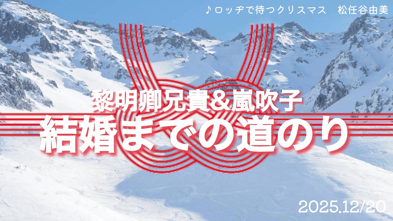 2025.12/20 熱田神宮にて黎明卿兄貴と嵐吹子は両家家族と共に結婚式を挙げました。<br><br>せっかくの走者婚なので出会いからお付き合い、結婚までの流れをRTA動画にしました🎥<br><br>今回は冒頭部分は同じで、それぞれの視点からの思い出深い山行を紹介する形式です。<br>是非、黎明卿兄貴の動画もご覧頂けましたら嬉しいです☺️<a href="https://www.nicovideo.jp/watch/sm45758968" class="watch">sm45758968</a><br><br>結婚式について:<br>最初はスタジオでのフォトウェディングやロケーション撮影(衣装をレンタルしてカメラマン同行で外で撮るサービス)でいいかなと思っていました。<br><br>ですが一生に一度の結婚式。<br>ブライダルフェアとかどんなものか行ってみたいよね〜とりあえず近いところから〜♪と熱田神宮のフェアに気軽な気持ちで見学に行ってお見積りを聞いたら、家族のみだと小さい儀式殿でできて、予算も思っていたよりコンパクト🤗<br>一旦持ち帰り相談して申し込むことにしました。<br><br>内容:<br>挙式のみ、披露宴なし、前撮り後撮りなし<br>当日の写真撮影あり(後日写真の全データとアルバムがもらえる)<br>夕食は隣の賀城園で婚礼会食コース(ケーキも注文)<br><br>感想:<br>すっっっごく良かった!!やってよかった!!<br>家族にもとても喜んでもらえたし、衣装の打ち合わせで色々試着も楽しかった。<br>(オプションやサービスをどこまで付けるかで金額が大きく変わるのでそこはシビアに検討です🤔)<br>家族のみなので招待状や受付、お礼の品などを省けて、その準備が無い分申込からお式まで2ヶ月程とかなりスピーディーに進みました。<br><br>色々と準備をして家族や親しい友人夫婦にも相談や報告したりして、当日を迎えることで、夫婦になるんだなとさらに実感が持てました😌<br>(白無垢を試着してる時も花嫁だー!花婿だー!と大変盛り上がりましたが、当日はやっぱりさらに別格でした)<br>当日の『私たちが今日は日本一の主役!』感はすごくて、この幸せな気持ちをこれからの夫婦生活でも大事にして、何かあってもこの日のことを思い出して初心を忘れずに過ごせそうです。<br><br>山に登るのは週末の2日、街では5日を一緒に過ごします。<br>思いやりを持ってこれからも一緒に幸せに楽しく暮らしていきたいです!<br><br>〜〜〜〜〜<br>結婚は唯一自分で決められる新しい家族と誰かが言っていました。積極性と主体性と話し合いがとっても大事だと感じました。<br>プロポーズとか結婚を待つ受け身ではなく(女性は受け身になりやすいですが)自分からも話をする姿勢がきっと今後の色んな局面でも良い方向に働くと思います。<br><br>ありがとうございました。<br>これからも私たち2人をよろしくお願い申し上げます。