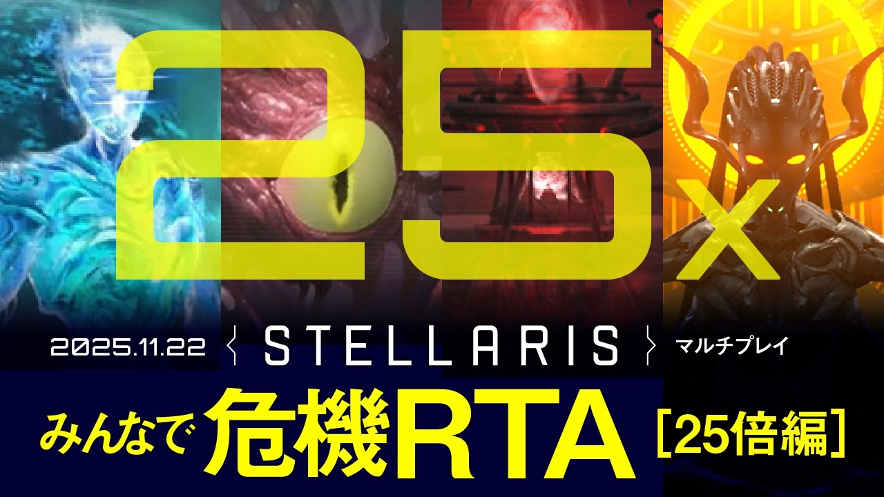 できるだけ早い危機撃破を目指す協力マルチのハイライト編集版です!<br><br>☆参加者<br>世界樹のコズエさん <a href="https://www.nicovideo.jp/user/120878223" target="_blank" rel="noopener">user/120878223</a><br>鹿川るいさん <a href="https://www.nicovideo.jp/user/13063629" target="_blank" rel="noopener">user/13063629</a><br>ド貧弱パーソンさん<br>あまがえるさん <a href="https://www.nicovideo.jp/user/12210945" target="_blank" rel="noopener">user/12210945</a><br>シヴァさん <a href="https://www.nicovideo.jp/user/40306356" target="_blank" rel="noopener">user/40306356</a><br>黒豹さん<br>ボノの介さん<br>Dpointさん<br>さかなさん<br>イレアさん <a href="https://www.nicovideo.jp/user/28737132" target="_blank" rel="noopener">user/28737132</a><br>yamaさん<br>トッピー<br><br>☆無編集版<br><a href="https://youtube.com/live/cYBtJg77a0g?feature=share" target="_blank" rel="noopener nofollow">https://youtube.com/live/cYBtJg77a0g?feature=share</a><br><br>☆企画の詳細<br><a href="https://discordapp.com/channels/255223697273651202/431015859952287745/1437764553134964806" target="_blank" rel="noopener nofollow">https://discordapp.com/channels/255223697273651202/431015859952287745/1437764553134964806</a><br><br>☆Discord StellarisJP鯖への招待コード<br><a href="https://discord.gg/stellarisjp" target="_blank" rel="noopener nofollow">https://discord.gg/stellarisjp</a><br><br>☆ナレーション<br>四国めたん(VOICEVOX)<br><br /><br><span style="color: #262626;">1stチャレンジ(国際地球連合編)⇒ </span><span style="color: #0000ff;"><a href="https://www.nicovideo.jp/series/157544" target="_blank" rel="noopener">series/157544</a></span><br><span style="color: #262626;">2ndチャレンジ(人類共同体編)⇒ </span><span style="color: #0000ff;"><a href="https://www.nicovideo.jp/series/182469" target="_blank" rel="noopener">series/182469</a></span><br><span style="color: #262626;">3rdチャレンジ(ロク機械主義国編)⇒ </span><span style="color: #0000ff;"><a href="https://www.nicovideo.jp/series/207056" target="_blank" rel="noopener">series/207056</a></span><br><span style="color: #262626;">4thチャレンジ(プリセットコンプ)⇒ </span><span style="color: #0000ff;"><a href="https://www.nicovideo.jp/series/287612" target="_blank" rel="noopener">series/287612</a></span><br><span style="color: #262626;">Stellarisマルチプレイ ⇒ </span><span style="color: #0000ff;"><a href="https://www.nicovideo.jp/series/367123" target="_blank" rel="noopener">series/367123</a></span><br><span style="color: #262626;">Stellaris検証動画 ⇒ </span><span style="color: #0000ff;"><a href="https://www.nicovideo.jp/series/202576" target="_blank" rel="noopener">series/202576</a></span><br><span style="color: #262626;">Stellaris妄想動画 ⇒ </span><span style="color: #0000ff;"><a href="https://www.nicovideo.jp/series/310298" target="_blank" rel="noopener">series/310298</a></span><br>Stellaris1分動画祭 ⇒ <a href="https://www.nicovideo.jp/series/404730" target="_blank" rel="noopener">series/404730</a><br><br><br><a target="_blank" href="https://qa.nicovideo.jp/faq/show/19424?site_domain=default" style="font-size: 13px;color: #657586; text-decoration: underline; line-height: 1.4">この動画は投稿者によって修正されました</a>