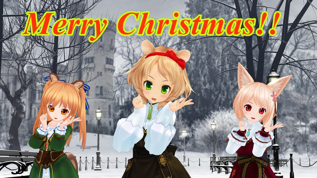 はいは~い!<span style="color: #ff0000; font-size: 24px;"><strong>Merry Christmas!!</strong></span>ですわよ~<br>ほら~みんなコタツから出て出て~<br><br>マリエルさん:「やだ。寒い。」<br>ユノアさん:「あと8年くらい眠り続けたい」(どこのPだよ)<br>REIちゃん:「ん~(のび~~~~~~)」<br>主:「早く出ないとサンタさん来てくれませんよ!」<br>マリエルさん:「それは大変。出ます。踊ります」<br>ユノアさん:「(シュタッ!)準備万端であります!プレゼントは金のインゴットで」(シレッと何か凄い物要求してきたぞ?)<br>REIちゃん:「マスター、起きた~ で、何踊るの?」<br>主:「あ、REIちゃん、今回はお留守番で」<br>REIちゃん:「グスン。また出番無いんだ…(泣」<br>主:「だって、ほら、REIちゃん薄着だし。ね」<br>REIちゃん:「わかった。おこたで8年くらい眠り続ける」(だから、どこのPですか)<br><br>【楽曲】<br>作曲:ちえP 様、作詞:リョータイ 様 La Noël Sucrée ~おさとうノエル~ ★ミクオリジナル★(<a href="https://www.nicovideo.jp/watch/sm1714678" class="watch">sm1714678</a>)<br><br>モーション:あひる@anatroccolo 様【MikuMikuDance】La Noël Sucrée(<a href="https://www.nicovideo.jp/watch/sm5490984" class="watch">sm5490984</a>)<br>ベースカメラ:盗賊@つばきP 様【MMD】「嘘とぬいぐるみ」(<a href="https://www.nicovideo.jp/watch/sm25760948" class="watch">sm25760948</a>)<br><br>マリエルさん:かにひら 様(<a href="https://www.nicovideo.jp/watch/sm13760761" class="watch">sm13760761</a>)※モデル配布終了<br>ユノアさん&リーアさん:狐白ましろ 様(<a href="https://3d.nicovideo.jp/works/td12979" target="_blank" rel="noopener">td12979</a>、<a href="https://3d.nicovideo.jp/works/td89909" target="_blank" rel="noopener">td89909</a>)<br>モデルアクセサリー:72ca 様(<a href="https://seiga.nicovideo.jp/seiga/im4551383" target="_blank" rel="noopener">im4551383</a>)、L3 様(<a href="https://seiga.nicovideo.jp/seiga/im11644306" target="_blank" rel="noopener">im11644306</a>)<br>ステージ:Ai 様【MMDステージ配布】雪の公園ステージ(<a href="https://seiga.nicovideo.jp/seiga/im10125270" target="_blank" rel="noopener">im10125270</a>)<br><br>Gets 様の、マリうさバージョン→<a href="https://www.nicovideo.jp/watch/sm16507827" class="watch">sm16507827</a><br><br>【広告御礼】<br>CBX250S 様、針井 原也 様(メリー・クリスマス!)、氷結果実 様、木花佐久夜 様(今回も大量投入ありがとうござます!)、Gets 様(マリうさ動画が可愛かったので~)、狐白ましろ 様、昼寝 様(撤去しますか!でも、ねだられたら出しちゃうw)、かつサンド 様(ありがとうござます~)、L3 様(メリー・クリスマス!0時待ちしてましたね?)、さどんです♪ 様、シロミミズク 様、xf108 様、giolum 様(追加感謝!)、Sonic Voive/39年組 様、えどーん 様、どりーむまっぷ 様(追加感謝~)、はやぶさからす 様<br><br />【これまでに投稿した動画リスト】<a href="https://www.nicovideo.jp/mylist/79114913" target="_blank" rel="noopener">mylist/79114913</a><br>【これまでに投稿した静画リスト】<a href="https://seiga.nicovideo.jp/user/illust/7589339" target="_blank" rel="noopener">user/illust/7589339</a><br><br>【その他、常用ツールなど】<br>MikuMikuDance:樋口優 様(<a href="https://www.nicovideo.jp/watch/sm2420025" class="watch">sm2420025</a>)<br>つんでれんこ:窓屋 様(<a href="https://www.nicovideo.jp/watch/sm7634361" class="watch">sm7634361</a>)<br>VMDサイジング:miu 様(<a href="https://seiga.nicovideo.jp/seiga/im9755721" target="_blank" rel="noopener">im9755721</a>)<br>PMXE:とある工房 様<br>MME:舞力介入P 様(<a href="https://www.nicovideo.jp/watch/sm12149815" class="watch">sm12149815</a>)<br>MikuMikuTelop:そぼろ様(<a href="https://www.nicovideo.jp/watch/sm15635052" class="watch">sm15635052</a>)<br>AutoLuminous:そぼろ 様(<a href="https://www.nicovideo.jp/watch/sm19843111" class="watch">sm19843111</a>)<br>スカイドーム:怪獣対若大将P 様、seasalt 様<br>なんやかんや色々なエフェクト:ビームマンP 様<br>とても便利なPMXEプラグイン:L3 様(<a href="https://www.nicovideo.jp/watch/sm44255948" class="watch">sm44255948</a>)<br>葉っぱとか柵とかの周囲を綺麗にするシェーダ:おたもん 様(<a href="https://seiga.nicovideo.jp/seiga/im3131306" target="_blank" rel="noopener">im3131306</a>)<br>大理石を鏡のように綺麗にする魔法:針金P 様「WorkingFloor2.fx ver0.0.8」<br>その他、書ききれないものはコンテンツツリーにて。<br>また、当方使用のモデルは俺得仕様改変したりしておりますのでご了承下さい。