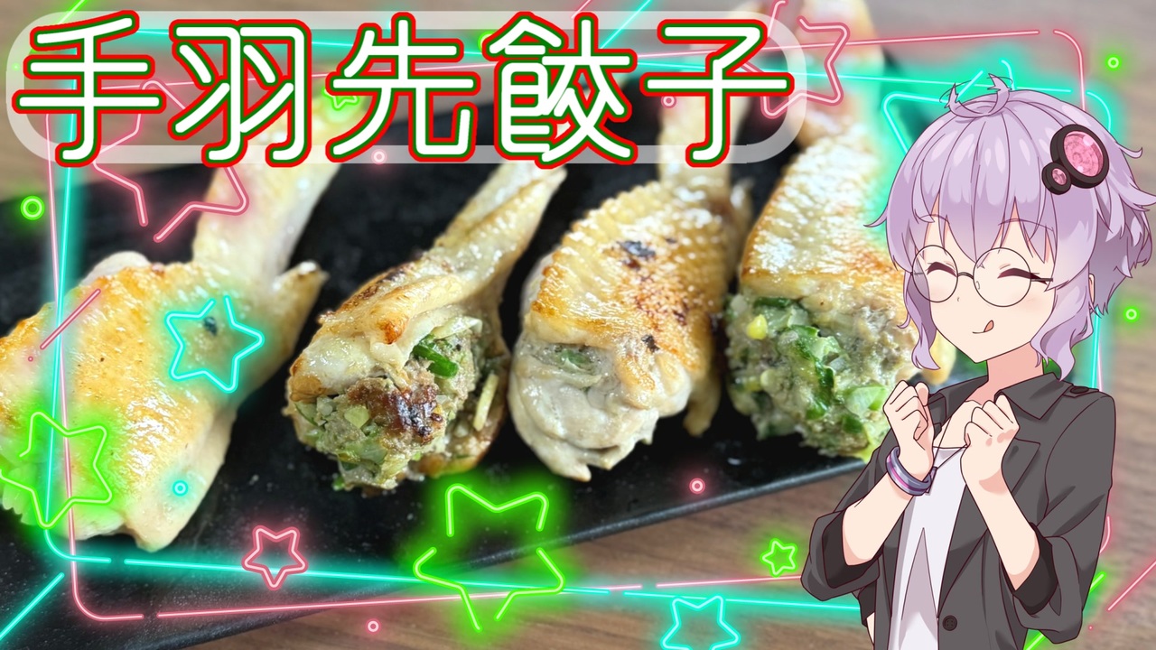 <span style="color: #f1c232; font-size: 24px;"><strong>みなさんメリークリスマス!</strong></span><br><br> こんにちは、伊里です。<br> 今回は手羽先餃子を作ってみました。<br> 不慣れな点、至らぬ点もあるかとは思いますが、よろしくおねがいします。 <br><br>【材料】<br>手羽先 … 10本前後<br>キャベツ … 30g<br>ニラ … 30g<br>長ネギ … 5cm<br>豚ひき肉 … 100g<br><br>にんにく … 1/2個(芽は取り除く)<br>生姜 … 10g ~ ひと欠け<br>砂糖 … 小さじ1/2<br>醤油 … 小さじ1/2<br>塩 … 適量<br>黒胡椒 … お好み<br>粉チーズ … 大さじ1<br>ごま油 … 大さじ1<br><br>――――――――――――――――――<br>・<strong>X(Twitter)</strong><br><a href="https://twitter.com/cook_with_iori" target="_blank" rel="noopener nofollow">https://twitter.com/cook_with_iori</a><br>・<span style="color: #ff0000;"><strong>YouTube</strong></span><br><a href="https://www.youtube.com/@cooking.yuzuru" target="_blank" rel="noopener nofollow">https://www.youtube.com/@cooking.yuzuru</a><br>・<span style="color: #0000ff;"><strong>Bluesky</strong></span><br><a href="https://bsky.app/profile/cook-with-iori.bsky.social" target="_blank" rel="noopener nofollow">https://bsky.app/profile/cook-with-iori.bsky.social</a><br>・<span style="color: #cc4125;"><strong>BOOTH</strong></span><br><a href="https://suzu-luncheonmat.booth.pm/" target="_blank" rel="noopener nofollow">https://suzu-luncheonmat.booth.pm/</a><br>――――――――――――――――――<br><br>クレジット<br><br>【BGM・効果音】<br>DOVA-SYNDROME / なぐもりずの音楽室 / ニコニ・コモンズ(各制作者)<br>効果音ラボ / モブニコミウドン / スタジオデムサト / いらすとや / ACイラスト<br>( 敬称略、サイト名・使用されていないサイト名も含む )<br><br>【立ち絵】<br>こーすけさんたまりあ 様<br><br><a target="_blank" href="https://qa.nicovideo.jp/faq/show/19424?site_domain=default" style="font-size: 13px;color: #657586; text-decoration: underline; line-height: 1.4">この動画は投稿者によって修正されました</a>