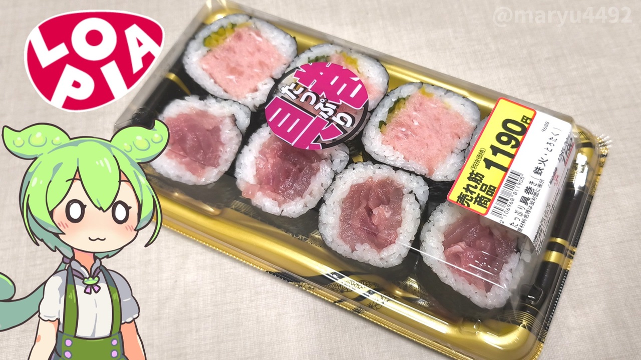 ロピアと言えば、肉やまとめ売り、デカいお惣菜ですが<br>量が多いお寿司もみかけます。どんな味がするのでしょうか?<br><br><br><br>【関連動画】<br>ロピアの「魚萬握り4種盛(1200円)」※ロピア大垣店 2024.11.05 <br><a href="https://www.nicovideo.jp/watch/sm44288979" target="_blank" rel="noopener nofollow">https://www.nicovideo.jp/watch/sm44288979</a><br><br>【参考】<br>ロピア<br><a href="https://lopia.jp/" target="_blank" rel="noopener nofollow">https://lopia.jp/</a><br>サイバー攻撃による情報漏えいに関する調査結果と<br>今後の対応について 2025.11.27(アサヒグループホールディングス)<br><a href="https://www.asahigroup-holdings.com/newsroom/detail/20251127-0104.html" target="_blank" rel="noopener nofollow">https://www.asahigroup-holdings.com/newsroom/detail/20251127-0104.html</a><br>アサヒのシステム障害、来年2月に復旧見通し…<br>27日に勝木敦志社長が記者会見して説明 2025.11.21(読売新聞オンライン)<br><a href="https://www.yomiuri.co.jp/economy/20251121-OYT1T50180/" target="_blank" rel="noopener nofollow">https://www.yomiuri.co.jp/economy/20251121-OYT1T50180/</a><br><br>【使用した素材】(※敬称略) <br>(合成音声)VOICEVOX/ずんだもん/四国めたん<br><a href="https://voicevox.hiroshiba.jp/" target="_blank" rel="noopener nofollow">https://voicevox.hiroshiba.jp/</a> <br>(立ち絵)坂本アヒル<br> <a href="https://seiga.nicovideo.jp/seiga/im10788496" target="_blank" rel="noopener nofollow">https://seiga.nicovideo.jp/seiga/im10788496</a><br>(楽曲)甘茶の音楽工房/「楽しい麦畑」「フルーツパフェ」「お城の舞踏会」<br><a href="https://amachamusic.chagasi.com/" target="_blank" rel="noopener nofollow">https://amachamusic.chagasi.com/</a>