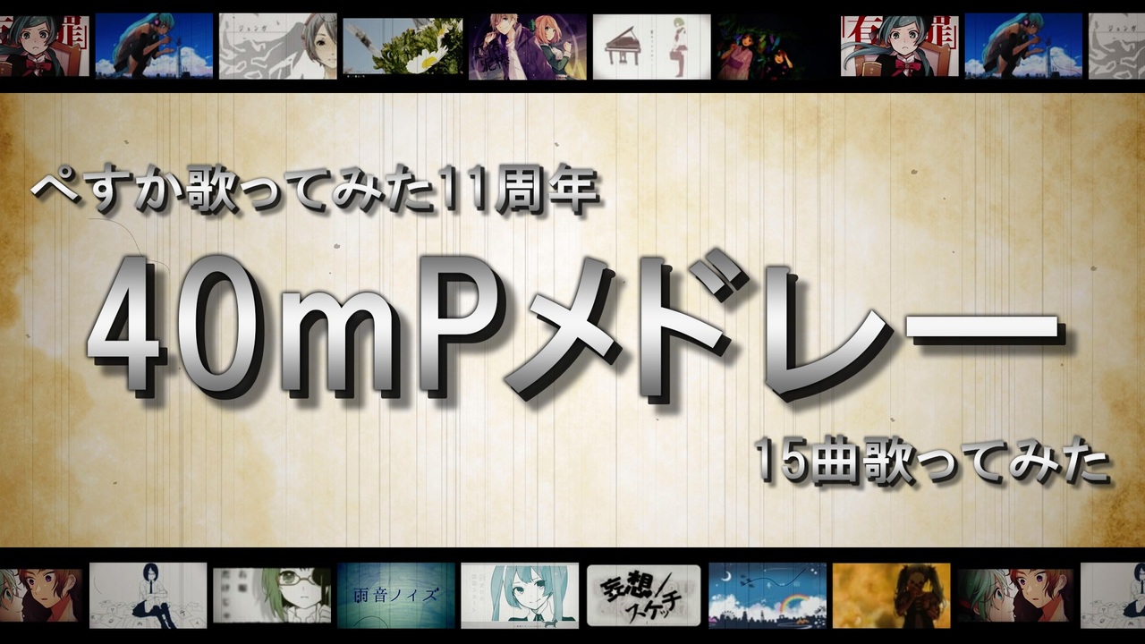 今回40mP様の楽曲15曲メドレーで歌わせて頂きました!<br>なんと本日でニコニコでの歌ってみた投稿11周年!<br>昔のアカウントや動画はもうありませんが<br>11年は長い...<br><br>歌ってみたは踊ってみたと比べて活動が濃くなく<br>数年投稿してなかったり逆にめちゃくちゃ投稿したり<br>活動が気まぐれですが<br>これからも自分のペースで楽しみます😌<br><br>良かったと思った方はぜひ<br>「いいね、マイリス、コメント、広告」<br>をよろしくお願いいたします✨<br><br>■ご本家様<br>・からくりピエロ 【<a href="https://www.nicovideo.jp/watch/sm15022913" class="watch">sm15022913</a>】<br>・恋愛裁判【<a href="https://www.nicovideo.jp/watch/sm23750267" class="watch">sm23750267</a>】<br>・妄想スケッチ【<a href="https://www.nicovideo.jp/watch/sm13252011" class="watch">sm13252011</a>】<br>・感情泥棒【<a href="https://www.nicovideo.jp/watch/sm25182507" class="watch">sm25182507</a>】<br>・悪役にキスシーンを【<a href="https://www.nicovideo.jp/watch/sm32231337" class="watch">sm32231337</a>】<br>・純情スカート【<a href="https://www.nicovideo.jp/watch/sm20127682" class="watch">sm20127682</a>】<br>・雨音ノイズ【<a href="https://www.nicovideo.jp/watch/sm25282736" class="watch">sm25282736</a>】<br>・ジェンガ【<a href="https://www.nicovideo.jp/watch/sm9558887" class="watch">sm9558887</a>】<br>・タイムマシン【<a href="https://www.nicovideo.jp/watch/sm12098837" class="watch">sm12098837</a>】※164さんとの共作<br>・フタリボシ【<a href="https://www.nicovideo.jp/watch/sm11302054" class="watch">sm11302054</a>】<br>・春に一番近い街【<a href="https://www.nicovideo.jp/watch/sm17142789" class="watch">sm17142789</a>】<br>・夢地図【<a href="https://www.nicovideo.jp/watch/sm14308995" class="watch">sm14308995</a>】<br>・トリノコシティ【<a href="https://www.nicovideo.jp/watch/sm11559163" class="watch">sm11559163</a>】<br>・シリョクケンサ【<a href="https://www.nicovideo.jp/watch/sm15230821" class="watch">sm15230821</a>】<br>・キリトリセン【<a href="https://www.nicovideo.jp/watch/sm13715524" class="watch">sm13715524</a>】<br><br>■歌、MIX:ぺすか<br>ぺすか歌ってみた【 <a href="https://www.nicovideo.jp/mylist/63952393" target="_blank" rel="noopener">mylist/63952393</a> 】<br>ぺすか踊ってみた【 <a href="https://www.nicovideo.jp/mylist/73349297" target="_blank" rel="noopener">mylist/73349297</a> 】<br>ぺすかゲーム実況【 <a href="https://www.nicovideo.jp/mylist/78058460" target="_blank" rel="noopener">mylist/78058460</a> 】<br>twitter 【 <a href="https://twitter.com/@zuma_pesca2" target="_blank" rel="noopener nofollow">https://twitter.com/@zuma_pesca2</a> 】<br>踊ってみたアカウント【 <a href="https://www.nicovideo.jp/user/124867470/mylist/73349297?ref=pc_watch_description" target="_blank" rel="noopener nofollow">https://www.nicovideo.jp/user/124867470/mylist/73349297?ref=pc_watch_description</a> 】