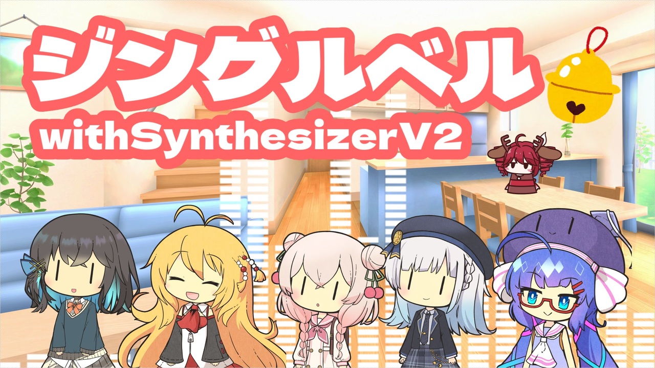 今年お迎えしたSynthesizerV2の子たちにジングルベルを歌ってもらいました!<br>メリークリスマス!<br><br>*- 🌟クレジット紹介🌟 -*<br>立ち絵イラスト:akihiyo様、音狐様<br>宮舞モカ:<a href="https://seiga.nicovideo.jp/seiga/im11659615" target="_blank" rel="noopener">im11659615</a><br>弦巻マキ:<a href="https://seiga.nicovideo.jp/seiga/im10597246" target="_blank" rel="noopener">im10597246</a><br>彩澄りりせ:<a href="https://seiga.nicovideo.jp/seiga/im11556237" target="_blank" rel="noopener">im11556237</a><br>彩澄しゅお:<a href="https://seiga.nicovideo.jp/seiga/im11556237" target="_blank" rel="noopener">im11556237</a><br>音街ウナ:<a href="https://seiga.nicovideo.jp/seiga/im10606602" target="_blank" rel="noopener">im10606602</a><br>重音テト:<a href="https://seiga.nicovideo.jp/seiga/im11598363" target="_blank" rel="noopener">im11598363</a><br><br>背景:みんちりえ様<br>BGM:96猫様の犬猫店長コラボ動画よりお借りしました(<a href="https://www.nicovideo.jp/watch/sm16518298" class="watch">sm16518298</a>)<br />--------------------------------------------------------------------------<br>ゲーム実況Part1マイリス:<a href="https://www.nicovideo.jp/mylist/78894221" target="_blank" rel="noopener">mylist/78894221</a><br>SynthV歌動画マイリス:<a href="https://www.nicovideo.jp/mylist/78894223" target="_blank" rel="noopener">mylist/78894223</a><br>--------------------------------------------------------------------------<br>📣動画投稿やニコ生に関する発信をSNSでも行っています<br>--------------------------------------------------------------------------<br>X(旧Twitter):<a href="https://x.com/wise_voiceroid" target="_blank" rel="noopener nofollow">https://x.com/wise_voiceroid</a><br>Bluesky:<a href="https://bsky.app/profile/wise-voiceroid.bsky.social" target="_blank" rel="noopener nofollow">https://bsky.app/profile/wise-voiceroid.bsky.social</a><br>Youtube:<a href="http://www.youtube.com/@wise-voiceroid" target="_blank" rel="noopener nofollow">http://www.youtube.com/@wise-voiceroid</a>