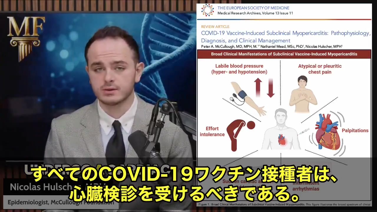 元の動画 → <a href="https://x.com/i/status/1999701371629781027" target="_blank" rel="noopener nofollow">https://x.com/i/status/1999701371629781027</a><br><br>🩺💉コロナワクチンを打った方、全員が心臓チェックを受けるべきだという新たな警鐘が鳴り響いています😧<br><br>専門家チームの新しい研究によると、ワクチンを接種した人のうち、約1〜3%が「無症状の心筋損傷」を抱えている可能性があるとのこと。<br><br>そして恐ろしいことに、その“最初の症状”が突然死であることも珍しくないそうです…😨<br><br>つまり、世界中で何百万人という人が、自分の心臓が壊れていることにすら気づいていないかもしれない、という事態😵💫<br><br>このチームは、こうした「ワクチン由来の心疾患」を早期に見つけて防ぐための、初めての“スクリーニングと治療プロトコル”を発表しました📄🧠<br><br>💥警戒すべきサインはこちら:<br>•胸の違和感<br>•ドキドキや不整脈<br>•ふらつきや立ちくらみ<br>•運動中の息切れ<br>•心拍の乱れ(POTSのような症状も)<br>•血圧が不安定になる<br><br>これらに心当たりがある方は、すぐに専門的な検査が必要とされています。<br><br>📋管理プロトコルも具体的に提案されており…<br>・血液マーカーの定期チェック🩸<br>・心電図やMRIによる画像診断🖥️<br>・数値が正常に戻るまでの運動制限🏃♂️🚫<br>・スパイクタンパクを分解するためのサプリ(ナットウキナーゼ、ブロメライン、クルクミン、コルヒチン)💊<br><br>ワクチン接種から時間が経っていても、これらの症状は“今、出てくる”こともあるとのこと😢<br><br>….これはもはや、個人の問題ではありません。心臓の声に耳を傾けるタイミングが、来ているのかもしれません🫀💬 12月13日<br><br><br><br><br><a href="https://x.com/w2skwn3" target="_blank" rel="noopener nofollow">https://x.com/w2skwn3</a><br>トッポ<br><br>@w2skwn3<br>趣味は国際政治ですが大学では医学を学びました。テレビの嘘報道にはうんざりしてツイッターで情報交換したいです。