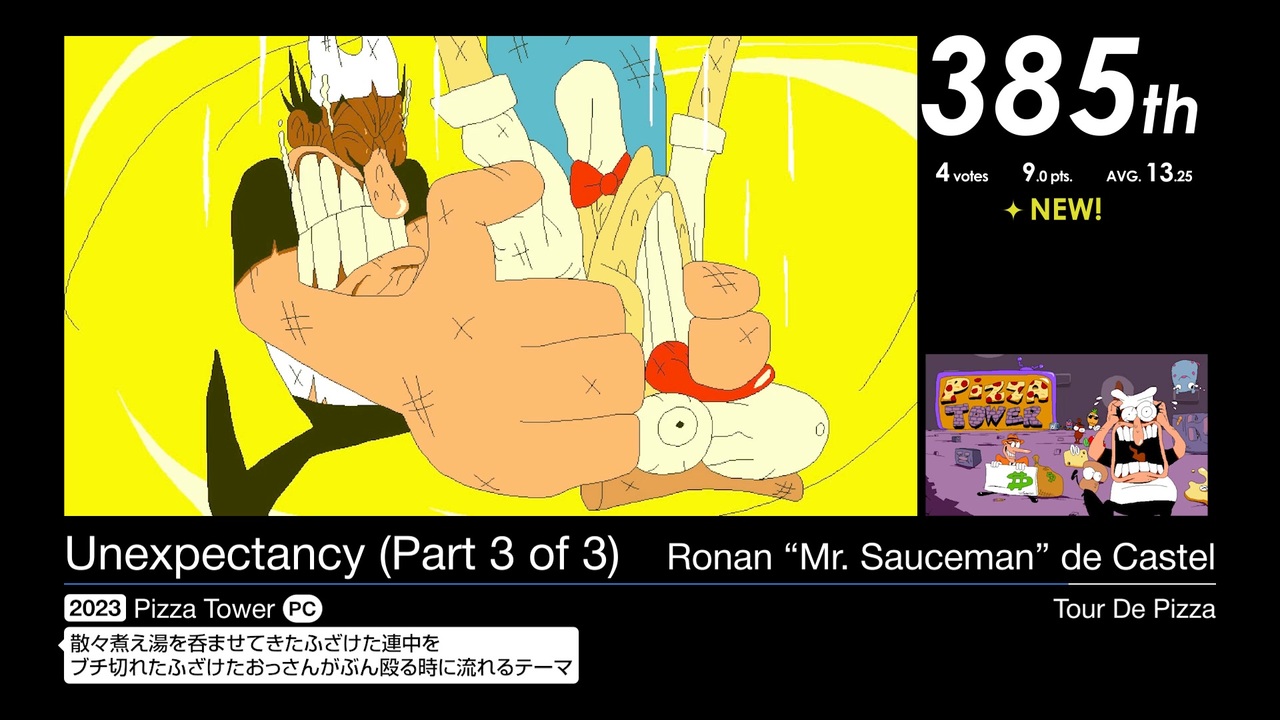 400位~376位の25曲を収録。<br><br>2024年6月11日~2024年8月1日で行われた「第17回みんなで決めるゲーム音楽ベスト100」の投票結果動画です。集計人≠動画制作者<br>よいお年を!<br><br><a href="https://www.nicovideo.jp/watch/sm45744253" class="watch">sm45744253</a>←前 次→<a href="https://www.nicovideo.jp/watch/sm45797686" class="watch">sm45797686</a><br><a href="https://www.nicovideo.jp/mylist/78315745" target="_blank" rel="noopener">mylist/78315745</a> <a href="https://www.nicovideo.jp/series/523562" target="_blank" rel="noopener">series/523562</a><br><br>400位 <a href="#" class="seekTime" data-seekTime="0:40" onclick="seekNicoPlayer('#0:40'); return false;">#0:40</a> / 398位 <a href="#" class="seekTime" data-seekTime="3:18" onclick="seekNicoPlayer('#3:18'); return false;">#3:18</a>, <a href="#" class="seekTime" data-seekTime="5:51" onclick="seekNicoPlayer('#5:51'); return false;">#5:51</a> / 397位 <a href="#" class="seekTime" data-seekTime="10:49" onclick="seekNicoPlayer('#10:49'); return false;">#10:49</a> / 394位 <a href="#" class="seekTime" data-seekTime="13:52" onclick="seekNicoPlayer('#13:52'); return false;">#13:52</a>, <a href="#" class="seekTime" data-seekTime="15:59" onclick="seekNicoPlayer('#15:59'); return false;">#15:59</a>, <a href="#" class="seekTime" data-seekTime="23:32" onclick="seekNicoPlayer('#23:32'); return false;">#23:32</a> / 393位 <a href="#" class="seekTime" data-seekTime="24:48" onclick="seekNicoPlayer('#24:48'); return false;">#24:48</a> / 390位 <a href="#" class="seekTime" data-seekTime="27:48" onclick="seekNicoPlayer('#27:48'); return false;">#27:48</a>, <a href="#" class="seekTime" data-seekTime="31:02" onclick="seekNicoPlayer('#31:02'); return false;">#31:02</a>, <a href="#" class="seekTime" data-seekTime="33:27" onclick="seekNicoPlayer('#33:27'); return false;">#33:27</a> / 388位 <a href="#" class="seekTime" data-seekTime="36:51" onclick="seekNicoPlayer('#36:51'); return false;">#36:51</a>, <a href="#" class="seekTime" data-seekTime="39:33" onclick="seekNicoPlayer('#39:33'); return false;">#39:33</a> / 385位 <a href="#" class="seekTime" data-seekTime="43:10" onclick="seekNicoPlayer('#43:10'); return false;">#43:10</a>, <a href="#" class="seekTime" data-seekTime="47:07" onclick="seekNicoPlayer('#47:07'); return false;">#47:07</a>, <a href="#" class="seekTime" data-seekTime="50:04" onclick="seekNicoPlayer('#50:04'); return false;">#50:04</a> / 383位 <a href="#" class="seekTime" data-seekTime="54:46" onclick="seekNicoPlayer('#54:46'); return false;">#54:46</a>, <a href="#" class="seekTime" data-seekTime="58:59" onclick="seekNicoPlayer('#58:59'); return false;">#58:59</a> / 382位 <a href="#" class="seekTime" data-seekTime="62:13" onclick="seekNicoPlayer('#62:13'); return false;">#62:13</a> / 381位 <a href="#" class="seekTime" data-seekTime="64:26" onclick="seekNicoPlayer('#64:26'); return false;">#64:26</a> / 378位 <a href="#" class="seekTime" data-seekTime="66:36" onclick="seekNicoPlayer('#66:36'); return false;">#66:36</a>, <a href="#" class="seekTime" data-seekTime="68:29" onclick="seekNicoPlayer('#68:29'); return false;">#68:29</a>, <a href="#" class="seekTime" data-seekTime="71:05" onclick="seekNicoPlayer('#71:05'); return false;">#71:05</a> / 377位 <a href="#" class="seekTime" data-seekTime="73:50" onclick="seekNicoPlayer('#73:50'); return false;">#73:50</a> / 376位 <a href="#" class="seekTime" data-seekTime="77:08" onclick="seekNicoPlayer('#77:08'); return false;">#77:08</a><br><br>----------<br><br>スクリーンショット募集中!詳細はこちら↓<br><a href="https://gamemusic17.vercel.app/" target="_blank" rel="noopener nofollow">https://gamemusic17.vercel.app/</a><br><br>結果詳細↓<br><a href="https://w.atwiki.jp/gamemusicbest100/pages/10538.html" target="_blank" rel="noopener nofollow">https://w.atwiki.jp/gamemusicbest100/pages/10538.html</a><br /><br>----------<br><br>第2回みんなで決める和風曲ランキング 2/28まで投票受付中!<br><a href="https://jbbs.shitaraba.net/bbs/read.cgi/music/25545/1764514793/" target="_blank" rel="noopener nofollow">https://jbbs.shitaraba.net/bbs/read.cgi/music/25545/1764514793/</a><br><br>みんなで決める2025年の新曲ゲーム音楽ランキング 3/31まで投票受付中!<br><a href="https://jbbs.shitaraba.net/bbs/read.cgi/music/25545/1769870472/" target="_blank" rel="noopener nofollow">https://jbbs.shitaraba.net/bbs/read.cgi/music/25545/1769870472/</a>