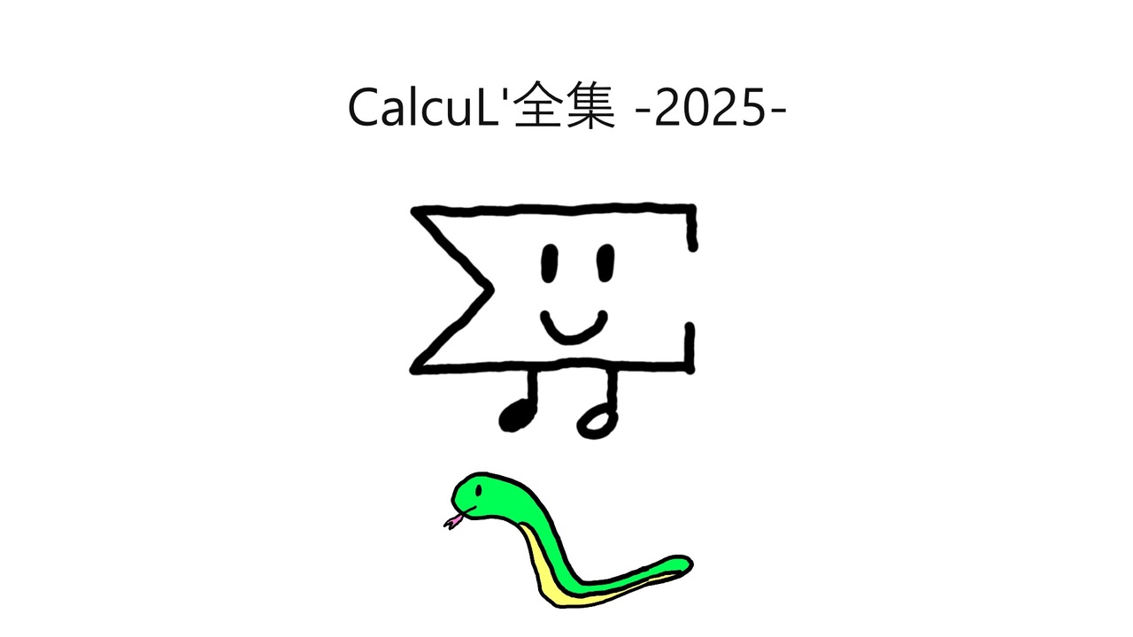 初めまして。<br>CalcuL’(カルキュル)と申します。<br>「数学をテーマにしたポップス」を作るボカロPです。<br><br>今回は2025年にリリースした曲のクロスフェード(総集編みたいなの)です。<br>2025年は数学曲を10曲、じゃない曲を4曲リリースしました。<br><br>活動を始めた2024年のクロスフェード(こちらは5曲)と合わせると全曲網羅できます。<br>「CalcuL’全集 -2024-」<br><a href="https://www.nicovideo.jp/watch/sm45755618" target="_blank" rel="noopener nofollow">https://www.nicovideo.jp/watch/sm45755618</a><br><br>数学曲は黒板にチョークで描いた風のイラストの曲で、じゃない曲はそうじゃない方です。<br><br>気になる曲があればマイリストやサブスクからぜひ聴いてみてください。<br><br>・マイリスト<br><a href="https://www.nicovideo.jp/mylist/77464959" target="_blank" rel="noopener nofollow">https://www.nicovideo.jp/mylist/77464959</a><br>(数学曲)<br><a href="https://www.nicovideo.jp/my/mylist/78024352" target="_blank" rel="noopener nofollow">https://www.nicovideo.jp/my/mylist/78024352</a><br>(じゃない曲)<br><br>・サブスク<br><a href="https://big-up.style/AbFcR3QgrC" target="_blank" rel="noopener nofollow">https://big-up.style/AbFcR3QgrC</a><br><br />CalcuL' (カルキュル) <br>X:<a href="https://twitter.com/CalcuL0825" target="_blank" rel="noopener nofollow">https://twitter.com/CalcuL0825</a><br>You Tube:<a href="https://www.youtube.com/@CalcuL_0825" target="_blank" rel="noopener nofollow">https://www.youtube.com/@CalcuL_0825</a><br>サブスク配信:<a href="https://big-up.style/artists/200410" target="_blank" rel="noopener nofollow">https://big-up.style/artists/200410</a><br><br><a target="_blank" href="https://qa.nicovideo.jp/faq/show/19424?site_domain=default" style="font-size: 13px;color: #657586; text-decoration: underline; line-height: 1.4">この動画は投稿者によって修正されました</a>