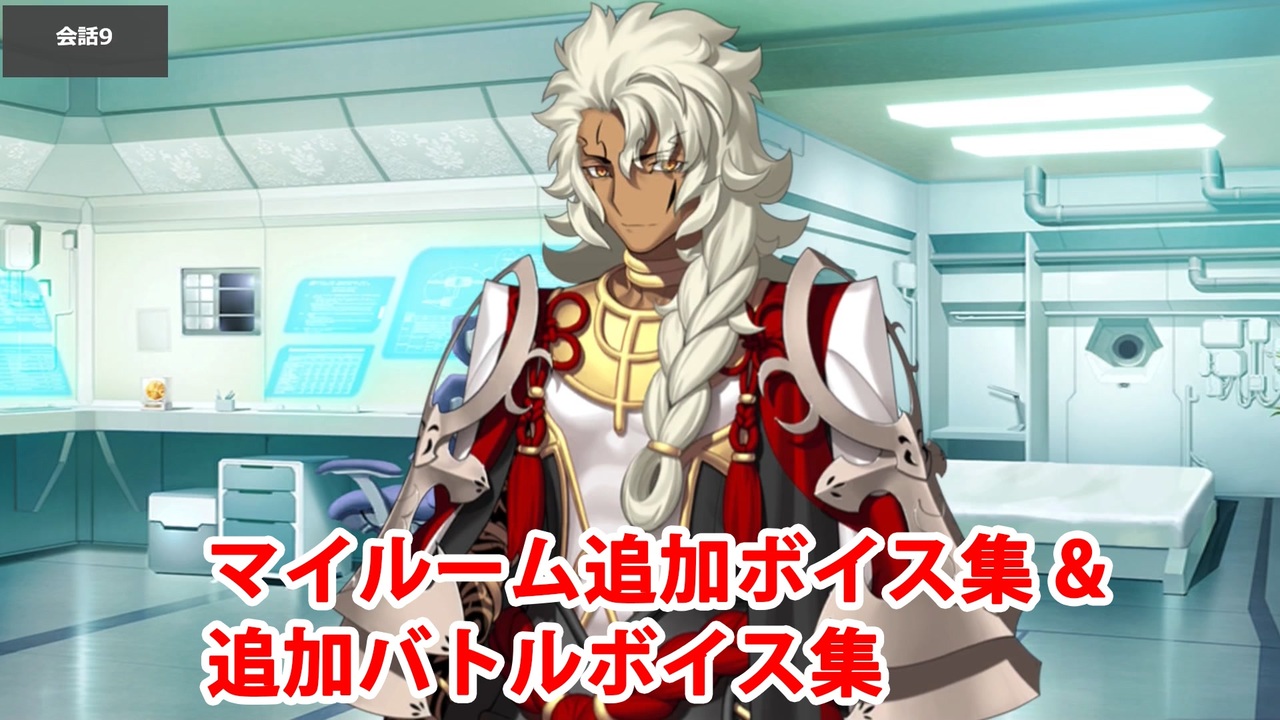 この動画は「第2部 終章」のネタバレを含みます。<br><br>「第2部 終章」クリア後に開放されるソロモン(CV:杉田智和)のマイルーム会話とバトルボイスのまとめです。<br><br>YouTube版はこちら<br><a href="https://www.youtube.com/watch?v=woWWbk27BdA" target="_blank" rel="noopener nofollow">https://www.youtube.com/watch?v=woWWbk27BdA</a><br><br />投稿済ボイス集→<a href="https://www.nicovideo.jp/mylist/57873980" target="_blank" rel="noopener">mylist/57873980</a>、<a href="https://www.nicovideo.jp/mylist/68037946" target="_blank" rel="noopener">mylist/68037946</a>、<a href="https://www.nicovideo.jp/mylist/76708013" target="_blank" rel="noopener">mylist/76708013</a>