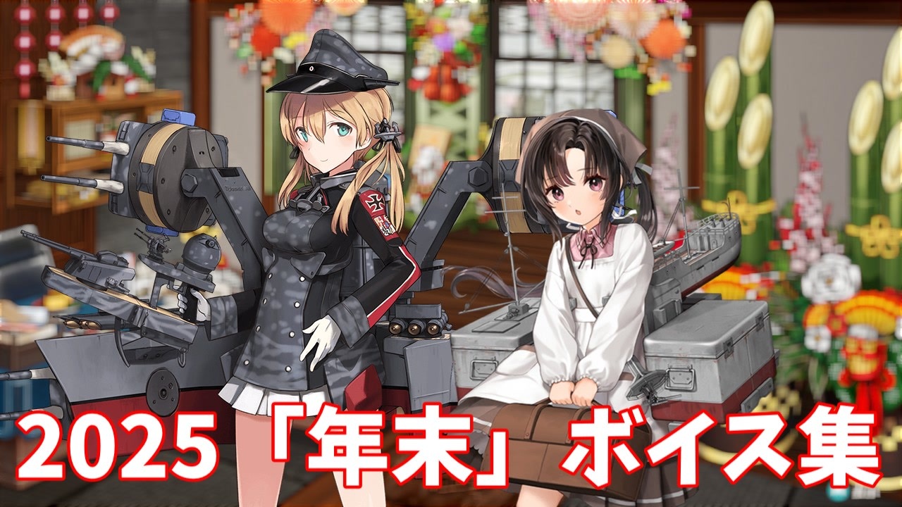 15隻の新規「年末」ボイス集です。今年もご視聴・コメント・広告等の応援、ありがとうございました。<br>2024年の「年末」ボイスはこちら→ <a href="https://www.nicovideo.jp/watch/sm44470672" class="watch">sm44470672</a><br><br>期間限定ボイス(図鑑No.順)<br>(Prinz_Eugen 野分 Richard_P.Leary Wahoo Dace 南海(野崎) 杉 樫 榧 <br>大泊 Norge Eidsvold Kirov しまね丸 Minneapolis)<br><br>前|秋月改二 追加ボイス&2025「クリスマス」ボイス集 (12/18アップデート) <a href="https://www.nicovideo.jp/watch/sm45745436" class="watch">sm45745436</a> <br><strong>次|2026「新春」ボイス集 (1/1アップデート)</strong> <a href="https://www.nicovideo.jp/watch/sm45793109" class="watch">sm45793109</a><br><br>艦これ追加ボイス集 マイリスト(<a href="https://www.nicovideo.jp/mylist/40513442" target="_blank" rel="noopener">mylist/40513442</a>)<br>シリーズ(<a href="https://www.nicovideo.jp/series/34200" target="_blank" rel="noopener">series/34200</a>)<br><br>Youtubeでも活動しています。<br>チャンネル <a href="https://www.youtube.com/channel/UCTYYB9O7hiQlH6Ee-Xxlbpg" target="_blank" rel="noopener nofollow">https://www.youtube.com/channel/UCTYYB9O7hiQlH6Ee-Xxlbpg</a><br>