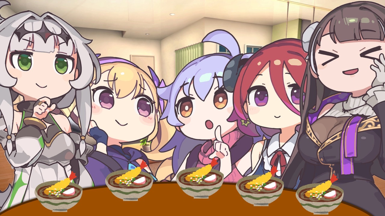 「えび天には長寿を願う意味があるらしいですよ」なディアちゃん<br>「かまぼこやネギにも意味あるらしいわよ」なリリンちゃん<br>「おいしい…!」なアンジーさん<br>「やはり漁場で買ってきたエビはうまいな」なクロワちゃん<br>「これからも元気でいてほしいな」なアルマちゃん<br><br>【素敵なボイス】<br>COEIROINK:ディアちゃん<br>COEIROINK:アルマちゃん<br>COEIROINK:リリンちゃん<br>COEIROINK:クロワちゃん<br>COEIROINK:アンジーさん<br><br>【立ち絵】<br>坂本アヒル様<br><a href="https://seiga.nicovideo.jp/seiga/im11696558" target="_blank" rel="noopener nofollow">https://seiga.nicovideo.jp/seiga/im11696558</a><br><a href="https://seiga.nicovideo.jp/seiga/im11696559" target="_blank" rel="noopener nofollow">https://seiga.nicovideo.jp/seiga/im11696559</a><br><a href="https://seiga.nicovideo.jp/seiga/im11696561" target="_blank" rel="noopener nofollow">https://seiga.nicovideo.jp/seiga/im11696561</a><br><a href="https://seiga.nicovideo.jp/seiga/im11696562" target="_blank" rel="noopener nofollow">https://seiga.nicovideo.jp/seiga/im11696562</a><br><a href="https://seiga.nicovideo.jp/seiga/im11696563" target="_blank" rel="noopener nofollow">https://seiga.nicovideo.jp/seiga/im11696563</a><br><br>【BGM】<br>ディアちゃんの休日(ラスキス公式様)<br><a href="https://commons.nicovideo.jp/works/nc266496" target="_blank" rel="noopener nofollow">https://commons.nicovideo.jp/works/nc266496</a><br>おもちうまうま(さりい様)<br><a href="https://youtu.be/R0jq1jwLDQQ?" target="_blank" rel="noopener nofollow">https://youtu.be/R0jq1jwLDQQ?</a><br><br>【背景./素材】<br>みんちりえ様<br><a href="https://min-chi.material.jp/" target="_blank" rel="noopener nofollow">https://min-chi.material.jp/</a><br>いらすとや様<br><a href="https://www.irasutoya.com/" target="_blank" rel="noopener nofollow">https://www.irasutoya.com/</a><br><br>【効果音】<br>効果音ラボ<br><a href="https://soundeffect-lab.info/" target="_blank" rel="noopener nofollow">https://soundeffect-lab.info/</a><br>ポケットサウンド様<br><a href="https://pocket-se.info/" target="_blank" rel="noopener nofollow">https://pocket-se.info/</a>
