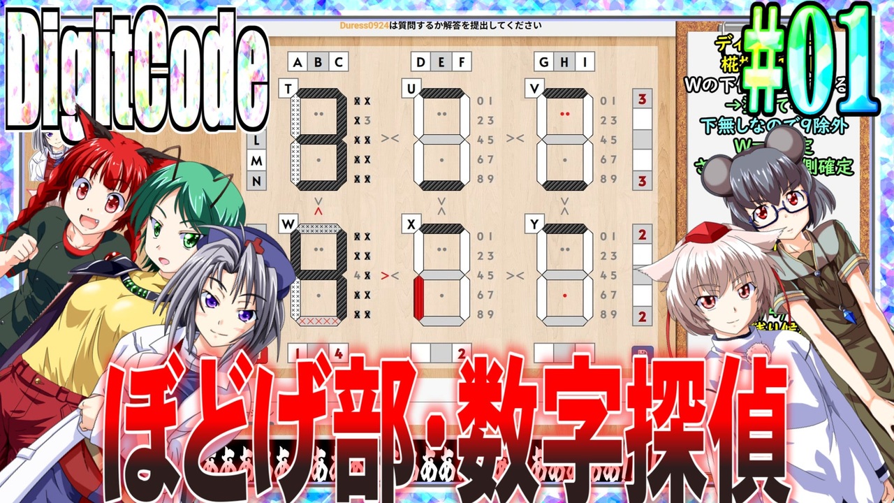ボードゲーム,DigitCodeです。<br>5人によるディジットコードをゆっくりで編集した動画となります。<br><br>◆ニコニコクリエイターサポート<br><a href="https://creator-support.nicovideo.jp/registration/1203831" target="_blank" rel="noopener nofollow">https://creator-support.nicovideo.jp/registration/1203831</a><br>動画制作の励みになります<br><br>◆Twitter<br><a href="https://twitter.com/ikamono8bit" target="_blank" rel="noopener nofollow">https://twitter.com/ikamono8bit</a><br>◆youtube<br><a href="http://www.youtube.com/c/IkamonoY" target="_blank" rel="noopener nofollow">http://www.youtube.com/c/IkamonoY</a><br>◆シリーズまとめ<br><a href="https://www.nicovideo.jp/user/1203831/series" target="_blank" rel="noopener nofollow">https://www.nicovideo.jp/user/1203831/series</a>