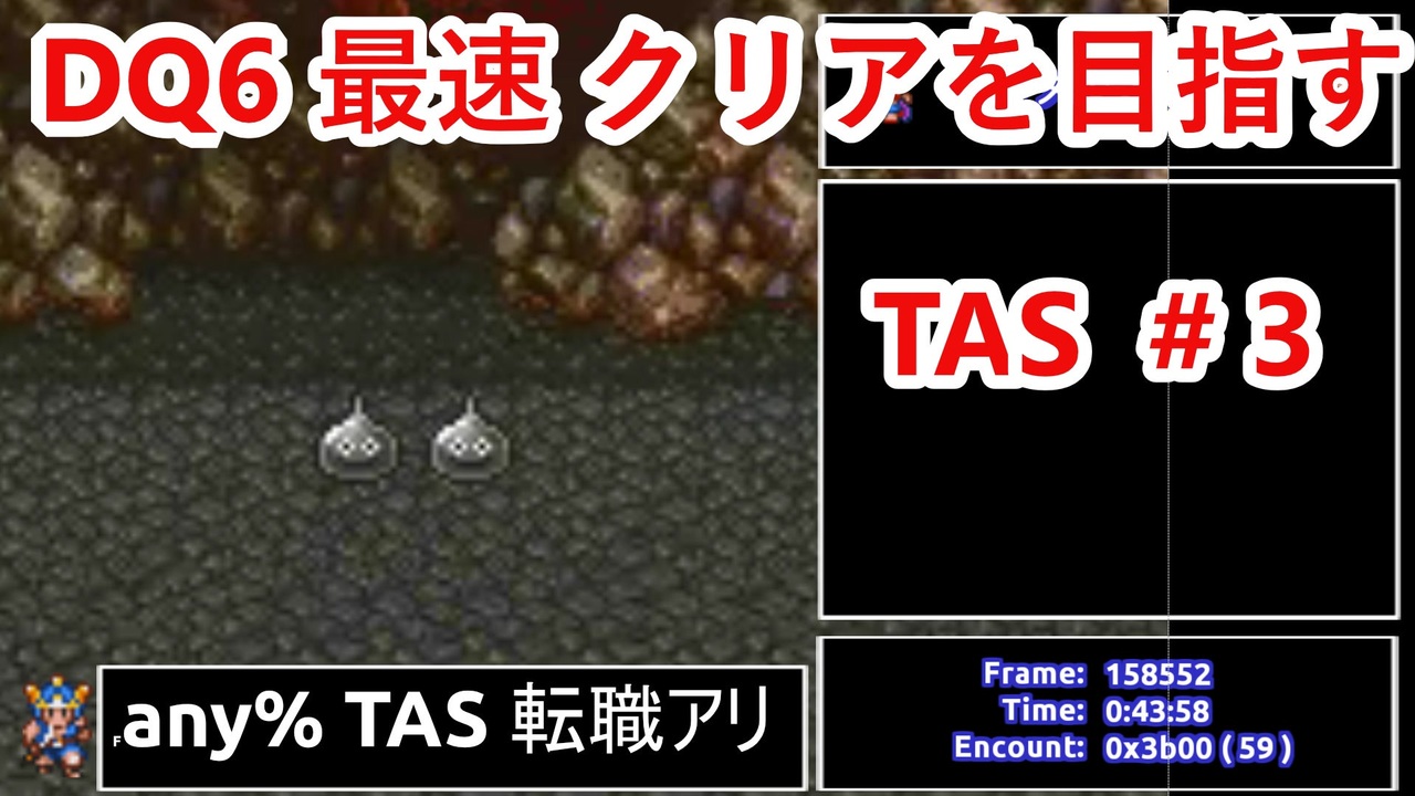 SFC版 DQ6 最速でクリア目指します <br><br>次:<a href="https://www.nicovideo.jp/watch/sm45863787" class="watch">sm45863787</a><br>前:<a href="https://www.nicovideo.jp/watch/sm45741317" class="watch">sm45741317</a><br>part1:<a href="https://www.nicovideo.jp/watch/sm45710448" class="watch">sm45710448</a><br><br>YouTubeにも投稿してます↓<br><a href="https://youtu.be/O5oMcbCv5F8" target="_blank" rel="noopener nofollow">https://youtu.be/O5oMcbCv5F8</a><br><br>【TAS】DQ6ダークドレアム撃破END: <br><a href="https://www.youtube.com/playlist?list=PLgaNpi8s6rnm9pnO-g4Mcqm4C6QLNjjXP" target="_blank" rel="noopener nofollow">https://www.youtube.com/playlist?list=PLgaNpi8s6rnm9pnO-g4Mcqm4C6QLNjjXP</a> <br><br>X(Twitter) <a href="https://twitter.com/eikyudai" target="_blank" rel="noopener nofollow">https://twitter.com/eikyudai</a> <br><br><br>ネタバレあり <br>この動画で利用している株式会社スクウェア・エニックスを代表とする共同著作者が権利を所有する著作物及びスギヤマ工房有限会社が権利を所有する楽曲の転載・配布は禁止いたします。<br> © 1995 ARMOR PROJECT/BIRD STUDIO/HEART BEAT/SQUARE ENIX All Rights Reserved.<br> © SUGIYAMA KOBO