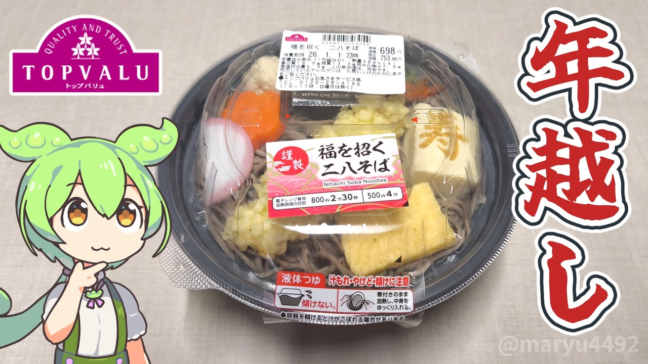 年末年始の食品スーパーはすっかりお正月モード<br>今回はチルドタイプの麺コーナーで見つけた<br>ちょっと豪華なおそばの紹介です。<br><br><br><br><br>【全ての始まり】<br>トップバリュの赤いヤツ「冷やしぶっかけ天ぷらうどん(30%引き)」2023.04.18<br><a href="https://www.nicovideo.jp/watch/sm42091854" target="_blank" rel="noopener nofollow">https://www.nicovideo.jp/watch/sm42091854</a><br>【関連動画】<br>トップバリュの「麺とつゆ、少量のねぎで超シンプルな大盛り麺(297円)」<br><a href="https://www.nicovideo.jp/watch/sm45462174" target="_blank" rel="noopener nofollow">https://www.nicovideo.jp/watch/sm45462174</a><br><br>【参考】<br>大徳食品株式会社<br><a href="http://www.daitoku-sh.co.jp/" target="_blank" rel="noopener nofollow">http://www.daitoku-sh.co.jp/</a><br>和風そば(関東・東海・中部)※本体価格58円/150g(トップバリュ)<br><a href="https://www.topvalu.net/items/detail/4549414373288/" target="_blank" rel="noopener nofollow">https://www.topvalu.net/items/detail/4549414373288/</a><br>江戸から各地に広まったそば文化(ミツカン)<br><a href="https://www.mizu.gr.jp/kikanshi/no76/03.html" target="_blank" rel="noopener nofollow">https://www.mizu.gr.jp/kikanshi/no76/03.html</a><br>二八そばの名前の由来(イトメン)<br><a href="https://www.itomen.com/brand/28soba/lp/history/" target="_blank" rel="noopener nofollow">https://www.itomen.com/brand/28soba/lp/history/</a><br>江戸で大流行したそばの歴史と全国に広まった「年越しそば」(マルコメ)<br><a href="https://www.marukome.co.jp/marukome_omiso/hakkoubishoku/20241226/20824/" target="_blank" rel="noopener nofollow">https://www.marukome.co.jp/marukome_omiso/hakkoubishoku/20241226/20824/</a><br><br>【使用した素材】(※敬称略) <br>(合成音声)VOICEVOX/ずんだもん/四国めたん<br><a href="https://voicevox.hiroshiba.jp/" target="_blank" rel="noopener nofollow">https://voicevox.hiroshiba.jp/</a> <br>(立ち絵)坂本アヒル<br> <a href="https://seiga.nicovideo.jp/seiga/im10788496" target="_blank" rel="noopener nofollow">https://seiga.nicovideo.jp/seiga/im10788496</a><br>(楽曲)甘茶の音楽工房/「楽しい麦畑」「フルーツパフェ」「お城の舞踏会」<br><a href="https://amachamusic.chagasi.com/" target="_blank" rel="noopener nofollow">https://amachamusic.chagasi.com/</a>