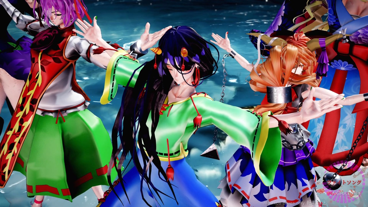 ていらん式の5人に踊ってもらいました。この作品は「東方project」の2次創作です。<br>現在、作成リクエストは受け付けていません。<br><br><br>【楽曲】:「ファイトソング」<br> 音楽/歌詞/歌手:Eve <br> 編曲:Numa<br> <a href="https://youtube.com/watch?v=2eOg5DoYuwU&t=0s" target="_blank" rel="noopener nofollow">https://youtube.com/watch?v=2eOg5DoYuwU&t=0s</a><br><br>【振付・トレス元】:踊サブ様 <a href="https://www.nicovideo.jp/watch/sm42621969" class="watch">sm42621969</a><br><br>【モーション】:旧型キャメロン様 <a href="https://www.nicovideo.jp/watch/sm45746598" class="watch">sm45746598</a><br><br>【カメラ/表情/リップ】:鷹羽はるひ様 (モーション同梱)<br><br><br>■スカイドーム<br>不穏な空:ばんぞく様 <a href="https://seiga.nicovideo.jp/seiga/im11571028" target="_blank" rel="noopener">im11571028</a><br><br>■ステージ<br>松ステージ:にくきゅー様 <a href="https://seiga.nicovideo.jp/seiga/im11392956" target="_blank" rel="noopener">im11392956</a><br>狛犬神社 :にくきゅー様 <a href="https://seiga.nicovideo.jp/seiga/im5560900" target="_blank" rel="noopener">im5560900</a><br>ホールステージ:にくきゅー様 <a href="https://seiga.nicovideo.jp/seiga/im9186316" target="_blank" rel="noopener">im9186316</a><br><br>■モデル<br>ていらん式日白残無 :絵本ドール様 <a href="https://www.nicovideo.jp/watch/sm45139357" class="watch">sm45139357</a><br>ていらん式茨木華扇 :絵本ドール様 <a href="https://www.nicovideo.jp/watch/sm45139357" class="watch">sm45139357</a><br>ていらん式伊吹萃香 :絵本ドール様 <a href="https://www.nicovideo.jp/watch/sm45139357" class="watch">sm45139357</a><br>ていらん式星熊勇儀 :絵本ドール様 <a href="https://www.nicovideo.jp/watch/sm45139357" class="watch">sm45139357</a><br>ていらん式豫母都日狭美:絵本ドール様 <a href="https://www.nicovideo.jp/watch/sm45139357" class="watch">sm45139357</a><br><br>■エフェクト<br>Ray-mmd-1.5.2:Rui様<br>初心者マテリアル:さらしな様<br>肌マテリアル:MARUSU様<br>AutoLuminous4:そぼろ様<br>水面エフェクト、流体水面エフェクト:ビームマンP様<br>空中に漂う埃:化身バレッタ様<br>ikBokeh_v020a:ikeno様<br><br><br>MikuMikuDance:樋口優様<br>MMEffect :舞力介入P様<br>PMDE、PmxE:極北P様<br>AviUtl :KENくん様<br>・Aviutl + x264guiExでエンコード:rigaya様<br>Ut Video Codec suite:ゆーむP様<br>上海アリス幻楽団・東方project(ZUN様)<br><br><br>mylist ③<a href="https://www.nicovideo.jp/mylist/75586824" target="_blank" rel="noopener">mylist/75586824</a> ② <a href="https://www.nicovideo.jp/mylist/72970530" target="_blank" rel="noopener">mylist/72970530</a> ① <a href="https://www.nicovideo.jp/mylist/63690967" target="_blank" rel="noopener">mylist/63690967</a> 旧 <br><br><a href="https://www.nicovideo.jp/mylist/61238351" target="_blank" rel="noopener">mylist/61238351</a><br><br> ※動画の転載は禁止です。<br>Attention,Unauthorized reproduction prohibited!!