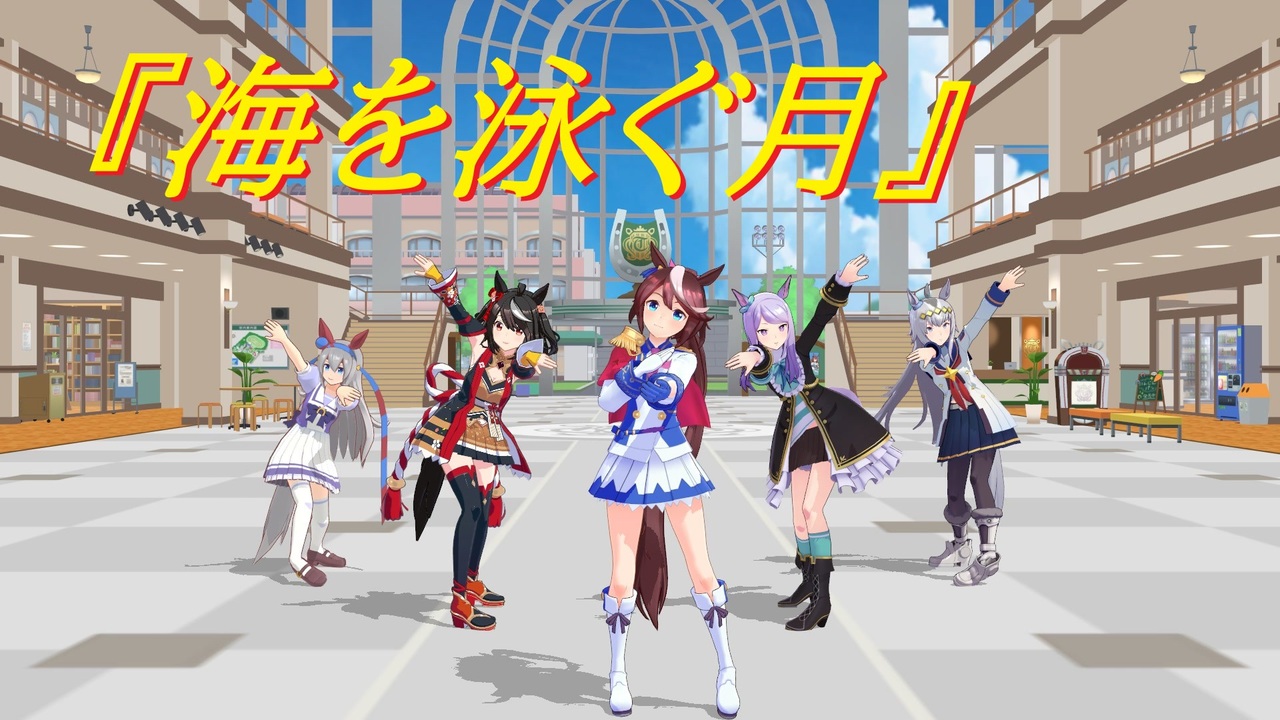 エイミさんのお誕生祭(<a href="https://www.nicovideo.jp/watch/sm45530795" class="watch">sm45530795</a>)でダンスモーションコラボをしたのですが、ユノアさんとリーアさんが見切れやすいカメラだったので、固定カメラで観てみたくない?とか思いまして、まぁ、どうせなら演者さんも別キャラにしてと、午年にちなんでウマ娘の皆さんにお声がけさせていただきました。<br>最初はユノマリにトレセン学園の制服(<a href="https://seiga.nicovideo.jp/seiga/im11454591" target="_blank" rel="noopener">im11454591</a>)着てもらおうかな?とか思いましたが、お着替えがまだなので、それはまた今度。<br>と、言うか、マリエルさんは元日から金魚草(<a href="https://seiga.nicovideo.jp/seiga/im11726371" target="_blank" rel="noopener">im11726371</a>)を高原の魔女の家の裏にせっせと運んで(<a href="https://www.nicovideo.jp/watch/sm45784635" class="watch">sm45784635</a>)いるようで……<br><br>メ:「あら?タマモクロスさん、何故制服ですの?」<br>タ:「学校来るっちゅうたら制服やろが」<br>キ:「先輩、それはそうなんですが…」<br>オ:(お腹空いたなぁ)<br>タ:「てか、何でみんな勝負服やねん」<br>キ:「それは、まぁ、お正月ですし、華やかな方が良いのかと(汗」<br>メ:「そうですわ!あなたはTPOってものが分からないのかしら?」<br>ト:「まぁまぁ、みんな可愛ければそれでオッケーなんだよ!さぁ!踊ろう!」<br>オ:(ダンスが終わったら学食行ってご飯食べよう)<br><br>楽曲:40mP 様【LUMi】 海を泳ぐ月 【オリジナルMV】(<a href="https://www.nicovideo.jp/watch/sm32836542" class="watch">sm32836542</a>)<br>モーション(トウカイテイオー):なつき 様(<a href="https://www.nicovideo.jp/watch/sm38956628" class="watch">sm38956628</a>)<br>モーション(タマモクロス、キタサンブラック、メジロマックイーン、オグリキャップ):たこはちP 様(<a href="https://www.nicovideo.jp/watch/sm33362508" class="watch">sm33362508</a>)<br>モデル:トウカイテイオー つかさ 様(<a href="https://3d.nicovideo.jp/works/td78939" target="_blank" rel="noopener">td78939</a>)<br> タマモクロス 斎藤プラザ 様(<a href="https://3d.nicovideo.jp/works/td80636" target="_blank" rel="noopener">td80636</a>)<br> キタサンブラック&メジロマックイーン&オグリキャップ ShiniNet 様(<a href="https://3d.nicovideo.jp/works/td82144" target="_blank" rel="noopener">td82144</a>、<a href="https://3d.nicovideo.jp/works/td77145" target="_blank" rel="noopener">td77145</a>、<a href="https://3d.nicovideo.jp/works/td77620" target="_blank" rel="noopener">td77620</a>)<br>※オグリキャップ動画内クレジット漏れ失礼しました<br>ステージ:ヨッシー/YGaMch. 様 ヨッシー式トレセン学園ホーム(<a href="https://3d.nicovideo.jp/works/td89119" target="_blank" rel="noopener">td89119</a>)<br><br>【広告御礼】<br>シロミミズク 様(ギフト大感謝!)、はやぶさからす 様、さどんです♪ 様、Gets 様、CBX250S 様、なつき 様(モーションありがとうございます)、氷結果実 様、L3 様(タマちゃんが真面目だからです。決して私が制服フェチだからなどでは…)、針井 原也 様、どりーむまっぷ 様、たこはちP 様、かつサンド 様(モデルクオリティーの高い娘中心にお迎えしております)、xf108 様、ナ~ 様、Kheyi 様、クロ151 様<br><br />【これまでに投稿した動画リスト】<a href="https://www.nicovideo.jp/mylist/79114913" target="_blank" rel="noopener">mylist/79114913</a><br>【これまでに投稿した静画リスト】<a href="https://seiga.nicovideo.jp/user/illust/7589339" target="_blank" rel="noopener">user/illust/7589339</a><br><br>【その他、常用ツールなど】<br>MikuMikuDance:樋口優 様(<a href="https://www.nicovideo.jp/watch/sm2420025" class="watch">sm2420025</a>)<br>つんでれんこ:窓屋 様(<a href="https://www.nicovideo.jp/watch/sm7634361" class="watch">sm7634361</a>)<br>VMDサイジング:miu 様(<a href="https://seiga.nicovideo.jp/seiga/im9755721" target="_blank" rel="noopener">im9755721</a>)<br>PMXE:とある工房 様<br>MME:舞力介入P 様(<a href="https://www.nicovideo.jp/watch/sm12149815" class="watch">sm12149815</a>)<br>MikuMikuTelop:そぼろ様(<a href="https://www.nicovideo.jp/watch/sm15635052" class="watch">sm15635052</a>)<br>AutoLuminous:そぼろ 様(<a href="https://www.nicovideo.jp/watch/sm19843111" class="watch">sm19843111</a>)<br>スカイドーム:怪獣対若大将P 様、seasalt 様<br>なんやかんや色々なエフェクト:ビームマンP 様<br>とても便利なPMXEプラグイン:L3 様(<a href="https://www.nicovideo.jp/watch/sm44255948" class="watch">sm44255948</a>)<br>葉っぱとか柵とかの周囲を綺麗にするシェーダ:おたもん 様(<a href="https://seiga.nicovideo.jp/seiga/im3131306" target="_blank" rel="noopener">im3131306</a>)<br>大理石を鏡のように綺麗にする魔法:針金P 様「WorkingFloor2.fx ver0.0.8」<br>その他、書ききれないものはコンテンツツリーにて。<br>また、当方使用のモデルは俺得仕様改変したりしておりますのでご了承下さい。