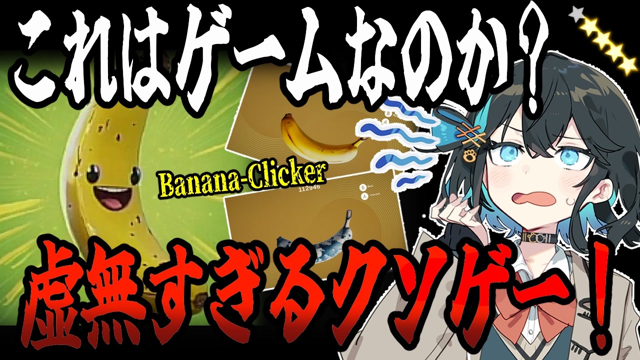 【目次】<br><a href="#" class="seekTime" data-seekTime="00:00" onclick="seekNicoPlayer('#00:00'); return false;">#00:00</a> オープニング<br><a href="#" class="seekTime" data-seekTime="00:32" onclick="seekNicoPlayer('#00:32'); return false;">#00:32</a> ゲーム実況<br><a href="#" class="seekTime" data-seekTime="12:09" onclick="seekNicoPlayer('#12:09'); return false;">#12:09</a> ゲームの総評<br><br>次 <a href="https://www.nicovideo.jp/watch/sm45828962" target="_blank" rel="noopener nofollow">https://www.nicovideo.jp/watch/sm45828962</a> <br>前 <a href="https://www.nicovideo.jp/watch/sm45754420" target="_blank" rel="noopener nofollow">https://www.nicovideo.jp/watch/sm45754420</a><br><br>遊んだゲーム <br>Banana-Clicker<br><br>開発メーカー <br>Testagamercreations<br><br>使用機材 <br>ゆっくりMovieMaker4 Lite <br><br>voicepeak 宮舞モカ 弦巻マキ 東北イタコ<br><br><br>お借りした素材<br>宮舞モカ立ち絵 弦巻マキ立ち絵 かれい様<br>立ち弦巻マキ・モカ素材 akihiyo様<br><br>玉ねぎ楷書_激_無料版v7 玉点堂様 梅干しフォント <br>toga様 ケイフォント すもももじ様 Genkai-Mincho-font源界明朝様 PixelMplus(ピクセル・エムプラス)様 <br>にくまるフォント 零ゴシック 装甲明朝 フロップデザインフォント様 <br>怨霊、暗黒ゾン字 暗黒工房様 <br>たぬき油性マジック 狸侍様 チェックポイントフォント よく飛ばない鳥様 <br><br>効果音ラボ様 みりんの動画素材様 telop.site様 いらすとや様 YOUTUBEの素材屋様 <br>DOVA-SYNDROME otologic様 White_Records様 <br>フリー素材サイトギャラリーハウス様 icon-rainbow Gam-Ol様<br>イラストAC<br><br>アーチ配置プラグイン いるかぁぁ様<br>Chipi Chipi Chapa Chapa クリステルの曲