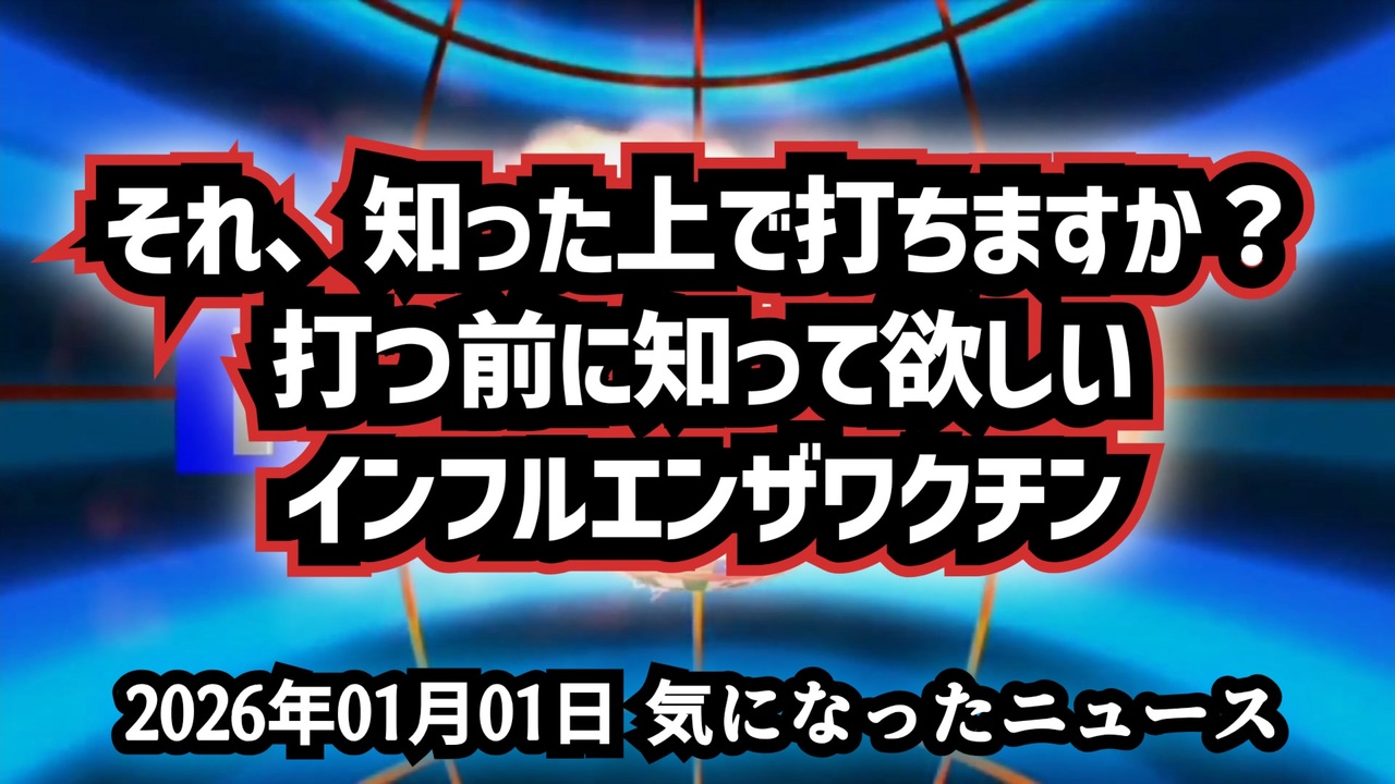 【明けましておめでとうございます】◆それ、知った上で打ちますか?打つ前に知って欲しい事実【インフルエンザワクチン】<br><br>あらすじ<br>インフルエンザワクチンは本当に公衆衛生のためだけに存在しているのか。本動画では、ワクチン添加剤やチメロサール、添付文書に記された注意点を起点に、予防接種制度の歴史と製薬業界の構造を整理する。ワクチン安全性を巡る議論がなぜ繰り返されるのか、医療ビジネスと予防医学の関係を冷静に見つめ直し、情報リテラシーを持って自分で判断するための視点が大切です。<br><br>◆今回の台本&詳細<a href="https://keiichiro8140.hatenablog.com/entry/26010111222" target="_blank" rel="noopener nofollow">https://keiichiro8140.hatenablog.com/entry/26010111222</a><br><br>◆これまでの動画<a href="https://x.gd/sPXoJ" target="_blank" rel="noopener nofollow">https://x.gd/sPXoJ</a><br><br>◆もしも(BAN)の時のためのマイリンク集<a href="https://lit.link/K-16_News44" target="_blank" rel="noopener nofollow">https://lit.link/K-16_News44</a><br><br>ご覧いただきありがとうございます<br>m(_ _)m<br><br>気になったニュース 2026/01/01<br><br />著作権、肖像権に配慮して作成しております。<br><br>◆気になったニュースの台本!?<br>メモ代わりに作った台本をそのままあげてます<br><a href="https://keiichiro8140.hatenablog.com/." target="_blank" rel="noopener nofollow">https://keiichiro8140.hatenablog.com/.</a><br><br><br>ここからはシリーズ紹介<br><br><br>◆ ワクチン解毒・デトックス<br><a href="https://x.gd/fZweg" target="_blank" rel="noopener nofollow">https://x.gd/fZweg</a><br><br>◆ウイリアム・マキス博士のがん治療(イベルメクチン・フェンベンダゾール等)<br><a href="https://x.gd/AtFYS" target="_blank" rel="noopener nofollow">https://x.gd/AtFYS</a><br><br>◆予防接種健康被害救済制度<br><a href="https://x.gd/0xK9x" target="_blank" rel="noopener nofollow">https://x.gd/0xK9x</a><br><br>◆気になったニュース #1501~<br><br>◆ 【ショートver】気になったニュース<br><a href="https://x.gd/7MxXC" target="_blank" rel="noopener nofollow">https://x.gd/7MxXC</a><br><br>◆ 気になったニュース #1001~<br><a href="https://x.gd/Lp8gv" target="_blank" rel="noopener nofollow">https://x.gd/Lp8gv</a><br><br>◆ 気になったニュース #501~<br><a href="https://x.gd/EmbS4" target="_blank" rel="noopener nofollow">https://x.gd/EmbS4</a><br><br>◆ 気になったニュース #1~#500<br><a href="https://x.gd/uPhNb" target="_blank" rel="noopener nofollow">https://x.gd/uPhNb</a><br><br>◆ X(旧Twitter)・テレグラムで気になった情報<br><a href="https://x.gd/YG6FT" target="_blank" rel="noopener nofollow">https://x.gd/YG6FT</a><br><br>◆ 日比谷5万人パレードデ⚪生放送アーカイブ動画<br><a href="https://x.gd/3CHJv" target="_blank" rel="noopener nofollow">https://x.gd/3CHJv</a><br><br>◆日比谷5万人パレード⚪モのマイリスト作ってみました<br><a href="https://nico.ms/mylist/76828848?ref=sp_other" target="_blank" rel="noopener nofollow">https://nico.ms/mylist/76828848?ref=sp_other</a><br><br>◆3.30 令和の百姓⚪⚪<br><a href="https://www.nicovideo.jp/series/511791?ref=garage_share_other" target="_blank" rel="noopener nofollow">https://www.nicovideo.jp/series/511791?ref=garage_share_other</a><br><br>◆ 及川幸久さんの【XNEWS】シリーズ<br><a href="https://x.gd/3k78K" target="_blank" rel="noopener nofollow">https://x.gd/3k78K</a><br><br>◆これまでの動画<a href="https://x.gd/sPXoJ" target="_blank" rel="noopener nofollow">https://x.gd/sPXoJ</a><br><br>◆もしも(BAN)の時のためのマイリンク集<a href="https://lit.link/K-16_News44" target="_blank" rel="noopener nofollow">https://lit.link/K-16_News44</a><br><br>