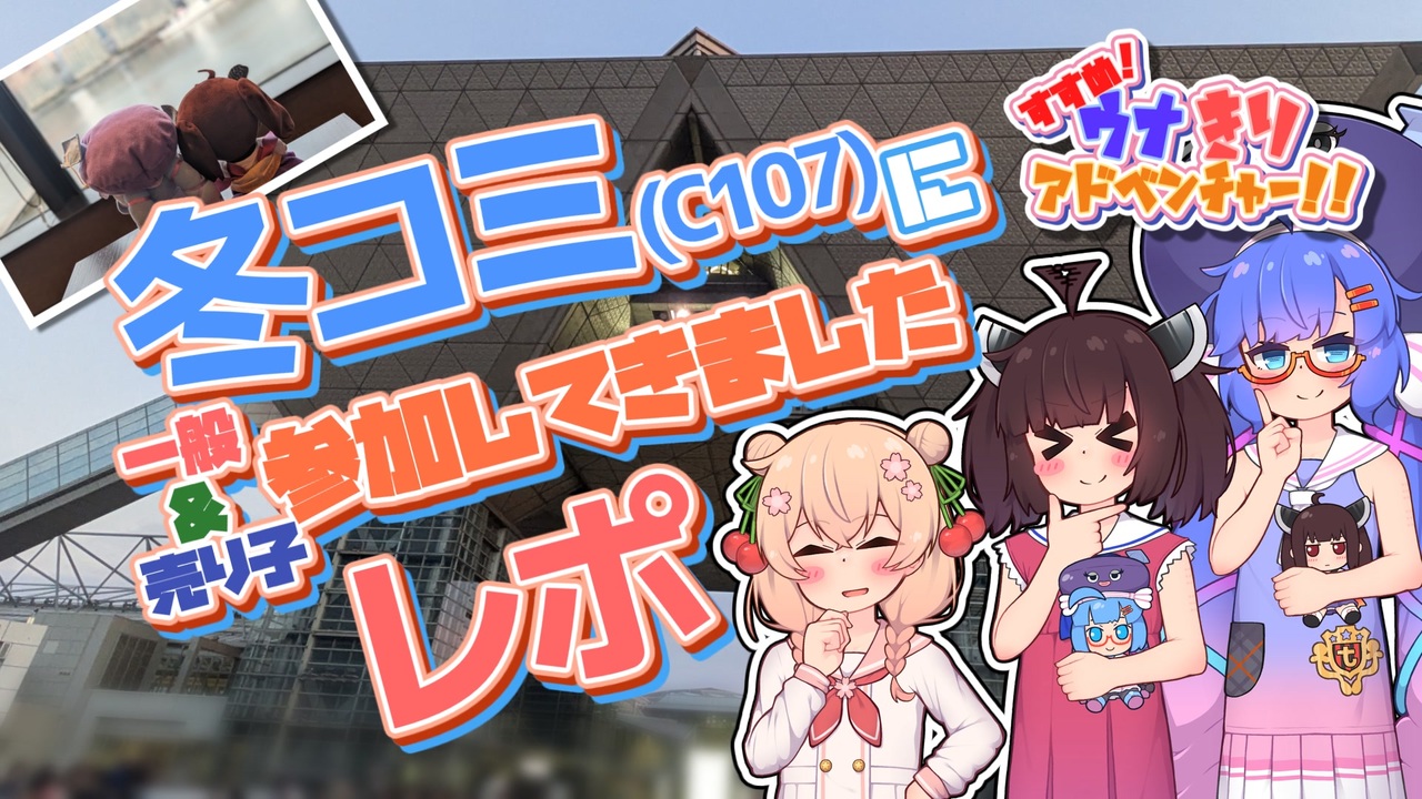 どうも、ひまっくすでございます(∩´∀`∩)<br><br><br>東北きりたん&音街ウナのウナきりによる旅動画をお届け!<br>テーマは「コミケ」「万葉倶楽部」!<br><br>今年最初の動画は2025年の年末に開催されたコミケ(C107)に<br>一般参加&売り子として参加したときのレポ動画!<br>そして、今回は彩澄しゅおちゃんも登場します!<br><br>冬コミですが、1日目は一般参加し<br>2日目はサークル主さんにご一緒させていただき売り子として参加してきました!<br>豊洲にある入浴施設にも行ってきましたよー!<br>(∩´∀`∩)<br><br><br><br>【BGMをお借りしたサイト】<br>ニコニ・コモンズ<br>DOVA-SYNDROME( <a href="https://dova-s.jp/" target="_blank" rel="noopener nofollow">https://dova-s.jp/</a> )<br>騒音のない世界 ( <a href="https://noiselessworld.net/" target="_blank" rel="noopener nofollow">https://noiselessworld.net/</a> )<br><br>【素材をお借りしたサイト】<br>ニコニ・コモンズ<br>ニコニコ静画<br>効果音ラボ( <a href="https://soundeffect-lab.info/" target="_blank" rel="noopener nofollow">https://soundeffect-lab.info/</a> )<br><br>【動画内で画像を引用させていただいたURL】<br>・東京豊洲 万葉倶楽部 HP<br><a href="https://tokyo-toyosu.manyo.co.jp/onsen/" target="_blank" rel="noopener nofollow">https://tokyo-toyosu.manyo.co.jp/onsen/</a><br><br><br>【過去動画シリーズはコチラからどうぞ!】<br>■すすめ!ウナきりアドベンチャー!!(シリーズ一覧)<br><a href="https://www.nicovideo.jp/series/350344" target="_blank" rel="noopener">series/350344</a><br><br><a target="_blank" href="https://qa.nicovideo.jp/faq/show/19424?site_domain=default" style="font-size: 13px;color: #657586; text-decoration: underline; line-height: 1.4">この動画は投稿者によって修正されました</a>