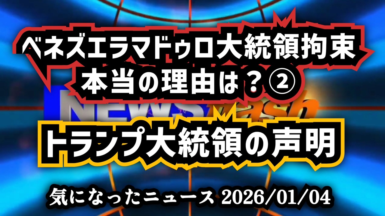 ◆ベネズエラ、マドゥロ大統領拘束の理由 ~ トランプ大統領衝撃演説 マドゥロが送り込んだベネズエラ系ギャングの正体とアメリカで起きた悲劇<br><br>最悪のギャング「トレン・デ・アラグア」 少女を襲った真実<br><br>最悪だと言われる理由 トランプが告発したベネズエラ犯罪組織の闇<br><br>あらすじ<br>アメリカ大統領トランプが演説で名指ししたのは、トレンデアラグアと呼ばれるベネズエラギャング。マドゥロ政権、ベネズエラギャング、不法移民問題、アメリカ治安、国境危機が一本につながる衝撃の内容が語られる。トランプは、大統領演説の中で、テロ組織とまで呼ばれる集団が米国犯罪にどう関与してきたのかを告発する。少女殺害事件を象徴として、米国社会が直面する現実が浮き彫りになる。なぜ今、トランプは再びこの問題を強く訴えるのか。トレンデアラグア、マドゥロ政権、国境危機というキーワードが示す真実とは何なのか。真相は映像の中で明らかになる。<br><br>◆今回の台本&詳細<a href="https://keiichiro8140.hatenablog.com/entry/26010444222" target="_blank" rel="noopener nofollow">https://keiichiro8140.hatenablog.com/entry/26010444222</a><br><br>◆これまでの動画<a href="https://x.gd/sPXoJ" target="_blank" rel="noopener nofollow">https://x.gd/sPXoJ</a><br><br>◆もしも(BAN)の時のためのマイリンク集<a href="https://lit.link/K-16_News44" target="_blank" rel="noopener nofollow">https://lit.link/K-16_News44</a><br><br>ご覧いただきありがとうございます<br>m(_ _)m<br><br>気になったニュース 2026/01/04<br><br />著作権、肖像権に配慮して作成しております。<br><br>◆気になったニュースの台本!?<br>メモ代わりに作った台本をそのままあげてます<br><a href="https://keiichiro8140.hatenablog.com/." target="_blank" rel="noopener nofollow">https://keiichiro8140.hatenablog.com/.</a><br><br><br>ここからはシリーズ紹介<br><br><br>◆ ワクチン解毒・デトックス<br><a href="https://x.gd/fZweg" target="_blank" rel="noopener nofollow">https://x.gd/fZweg</a><br><br>◆ウイリアム・マキス博士のがん治療(イベルメクチン・フェンベンダゾール等)<br><a href="https://x.gd/AtFYS" target="_blank" rel="noopener nofollow">https://x.gd/AtFYS</a><br><br>◆予防接種健康被害救済制度<br><a href="https://x.gd/0xK9x" target="_blank" rel="noopener nofollow">https://x.gd/0xK9x</a><br><br>◆気になったニュース #1501~<br><br>◆ 【ショートver】気になったニュース<br><a href="https://x.gd/7MxXC" target="_blank" rel="noopener nofollow">https://x.gd/7MxXC</a><br><br>◆ 気になったニュース #1001~<br><a href="https://x.gd/Lp8gv" target="_blank" rel="noopener nofollow">https://x.gd/Lp8gv</a><br><br>◆ 気になったニュース #501~<br><a href="https://x.gd/EmbS4" target="_blank" rel="noopener nofollow">https://x.gd/EmbS4</a><br><br>◆ 気になったニュース #1~#500<br><a href="https://x.gd/uPhNb" target="_blank" rel="noopener nofollow">https://x.gd/uPhNb</a><br><br>◆ X(旧Twitter)・テレグラムで気になった情報<br><a href="https://x.gd/YG6FT" target="_blank" rel="noopener nofollow">https://x.gd/YG6FT</a><br><br>◆ 日比谷5万人パレードデ⚪生放送アーカイブ動画<br><a href="https://x.gd/3CHJv" target="_blank" rel="noopener nofollow">https://x.gd/3CHJv</a><br><br>◆日比谷5万人パレード⚪モのマイリスト作ってみました<br><a href="https://nico.ms/mylist/76828848?ref=sp_other" target="_blank" rel="noopener nofollow">https://nico.ms/mylist/76828848?ref=sp_other</a><br><br>◆3.30 令和の百姓⚪⚪<br><a href="https://www.nicovideo.jp/series/511791?ref=garage_share_other" target="_blank" rel="noopener nofollow">https://www.nicovideo.jp/series/511791?ref=garage_share_other</a><br><br>◆ 及川幸久さんの【XNEWS】シリーズ<br><a href="https://x.gd/3k78K" target="_blank" rel="noopener nofollow">https://x.gd/3k78K</a><br><br>◆これまでの動画<a href="https://x.gd/sPXoJ" target="_blank" rel="noopener nofollow">https://x.gd/sPXoJ</a><br><br>◆もしも(BAN)の時のためのマイリンク集<a href="https://lit.link/K-16_News44" target="_blank" rel="noopener nofollow">https://lit.link/K-16_News44</a><br><br>