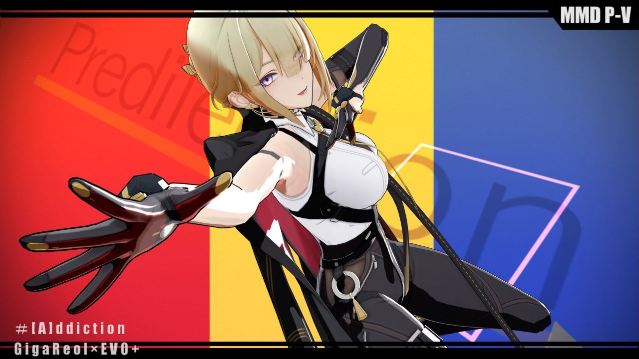 MAO様のPVキットをお借りしてイヴリンさんに踊ってもらいました!<br><br>■参加企画<br>【MMD-PVフェスタ】<br> <a href="https://www.nicovideo.jp/watch/sm45627510" class="watch">sm45627510</a><br>【2026年新春MMD祭り】 <br> <a href="https://www.nicovideo.jp/watch/sm45495112" class="watch">sm45495112</a><br><br>▼お借りしたもの🙏<br><楽曲><br> [A]ddiction / GigaReol×EVO+様<br> <a href="https://www.nicovideo.jp/watch/sm27594954" class="watch">sm27594954</a><br><br><振付><br> 足太ぺんた様<br> <a href="https://www.nicovideo.jp/watch/sm30167510" class="watch">sm30167510</a><br> <br><モーション><br> hino様<br> <a href="https://www.nicovideo.jp/watch/sm32142474" class="watch">sm32142474</a><br><br><カメラ&背景&PVキット><br> MAO様<br> <a href="https://www.nicovideo.jp/watch/sm33775496" class="watch">sm33775496</a><br><br><モデル><br> miHoYo/观海子様<br> ゼンゼロ公式モデル配布一覧 <br> <a href="https://note.com/unsoluble_sugar/n/n1854008621ba" target="_blank" rel="noopener nofollow">https://note.com/unsoluble_sugar/n/n1854008621ba</a><br><br><エフェクト><br> そぼろ様/くろくま様/カヤ様/びーと様/針金P様/P.I.P様<br><br>■YouTube版<br><a href="https://youtu.be/gc_9E1KsCHY" target="_blank" rel="noopener nofollow">https://youtu.be/gc_9E1KsCHY</a>