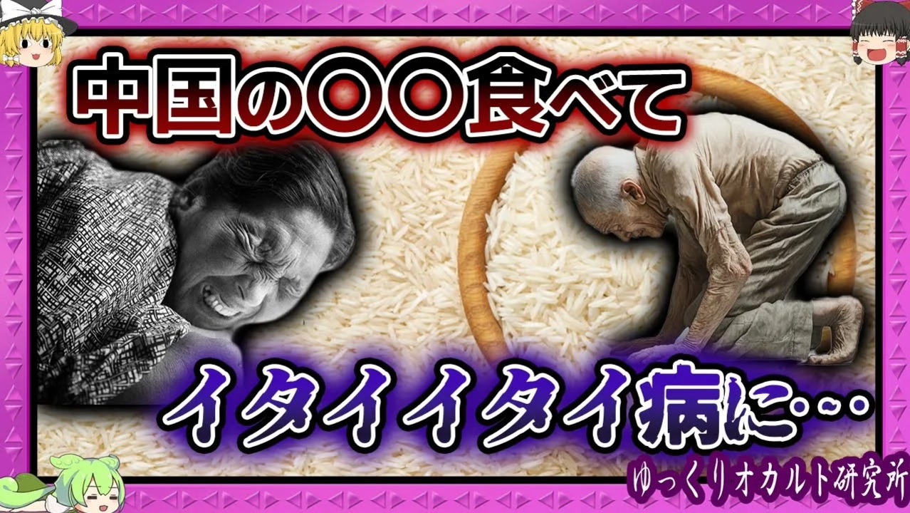 イタイイタイ病の発症原因物質「カドミウム」。発がん性があり、人体への影響も大きく激痛症状や腎障害に繫がります。日本の公害史における健康被害メカニズムの象徴が、食卓の主役とも言える米に混じっていたら…。【 ゆっくり解説 中国 カドミウム米 】シリーズとして ゆっくり茶番劇 スタイルでお届けします。そんな悪夢が中国で発生しています。実際に中国各地ではイタイイタイ病と同様の症状を訴える人たちが相次いでいますが、中国共産党はそれを大きな課題として発信することはしません。そしてそのカドミウム米は海を越えて輸入もされています。 00:00 イントロダクション 00:38 中国で生産され続けるカドミウム汚染米 02:38 日本に輸出される汚染米 03:28 中国の特供体制 03:54 中国政府の対応~被害の現状不明~ 05:54 日本の対応 06:45 超どうでもいい話 <br>★関連動画はこちらから! <a href="https://youtube.com/@ゆっくりオカルト研究所" target="_blank" rel="noopener nofollow">https://youtube.com/@ゆっくりオカルト研究所</a> ★気まずすぎる動画はメンバーシップで…→ <a href="https://www.youtube.com/channel/UCirxRvghHohWx9iWLKYuceg/join" target="_blank" rel="noopener nofollow">https://www.youtube.com/channel/UCirxRvghHohWx9iWLKYuceg/join</a> ★規制されてしまった動画・オリジナル動画等あり!裏オカ研(サブスク):再生リスト「裏のアレ」→ <a href="https://mediable.jp/playlists/c98143a6-4a92-4337-9325-e15eadaab6e2" target="_blank" rel="noopener nofollow">https://mediable.jp/playlists/c98143a6-4a92-4337-9325-e15eadaab6e2</a> #ゆっくり解説#汚染米#カドミウム米#カドミウム#中国#イタイイタイ病