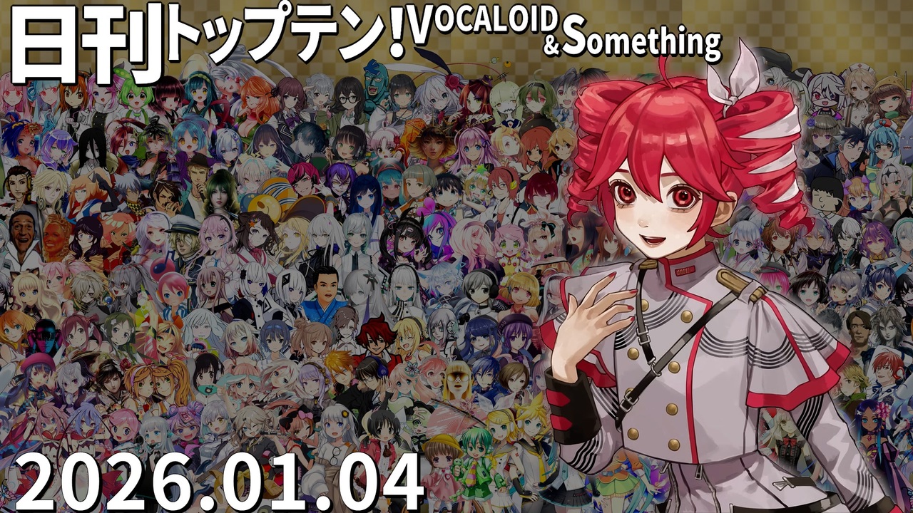 前日(1/3)←<a href="https://www.nicovideo.jp/watch/sm45804845" class="watch">sm45804845</a> <a href="https://www.nicovideo.jp/watch/sm45813618" class="watch">sm45813618</a>→翌日(1/5)<br>★各エンディングをXでまとめて確認できます!<a href="https://tinyurl.com/4pz498rk" target="_blank" rel="noopener nofollow">https://tinyurl.com/4pz498rk</a><br>★チャプター<br>昨日1位<a href="#" class="seekTime" data-seekTime="0:00" onclick="seekNicoPlayer('#0:00'); return false;">#0:00</a> TOP10<a href="#" class="seekTime" data-seekTime="0:36" onclick="seekNicoPlayer('#0:36'); return false;">#0:36</a> 1年前<a href="#" class="seekTime" data-seekTime="2:56" onclick="seekNicoPlayer('#2:56'); return false;">#2:56</a> TOP3<a href="#" class="seekTime" data-seekTime="3:24" onclick="seekNicoPlayer('#3:24'); return false;">#3:24</a> 10年前<a href="#" class="seekTime" data-seekTime="4:55" onclick="seekNicoPlayer('#4:55'); return false;">#4:55</a> PICKUP<a href="#" class="seekTime" data-seekTime="5:23" onclick="seekNicoPlayer('#5:23'); return false;">#5:23</a> <br><br>★トップテン<br>10:<a href="https://www.nicovideo.jp/watch/sm45790838" class="watch">sm45790838</a> 9:<a href="https://www.nicovideo.jp/watch/sm45778568" class="watch">sm45778568</a> 8:<a href="https://www.nicovideo.jp/watch/sm45776633" class="watch">sm45776633</a> 7:<a href="https://www.nicovideo.jp/watch/sm45795918" class="watch">sm45795918</a> <br>6:<a href="https://www.nicovideo.jp/watch/sm45789621" class="watch">sm45789621</a> 5:<a href="https://www.nicovideo.jp/watch/sm45743567" class="watch">sm45743567</a> 4:<a href="https://www.nicovideo.jp/watch/sm45785050" class="watch">sm45785050</a> 3:<a href="https://www.nicovideo.jp/watch/sm45795677" class="watch">sm45795677</a> 2:<a href="https://www.nicovideo.jp/watch/sm45794517" class="watch">sm45794517</a> 1:<a href="https://www.nicovideo.jp/watch/sm45796994" class="watch">sm45796994</a> <br><br>★ピックアップ(B~Dは超新着枠)<br>B:<a href="https://www.nicovideo.jp/watch/sm45788718" class="watch">sm45788718</a> C:<a href="https://www.nicovideo.jp/watch/sm45799300" class="watch">sm45799300</a> D:<a href="https://www.nicovideo.jp/watch/sm45797723" class="watch">sm45797723</a> E:<a href="https://www.nicovideo.jp/watch/sm45781517" class="watch">sm45781517</a> F:<a href="https://www.nicovideo.jp/watch/sm45780532" class="watch">sm45780532</a> G:<a href="https://www.nicovideo.jp/watch/sm45789168" class="watch">sm45789168</a> <br>H:<a href="https://www.nicovideo.jp/watch/sm45773734" class="watch">sm45773734</a> <br><br>★プレイバック <br>A(1年前):<a href="https://www.nicovideo.jp/watch/sm44503196" class="watch">sm44503196</a> 十(10年前):<a href="https://www.nicovideo.jp/watch/sm27942877" class="watch">sm27942877</a> 前日の第1位: <a href="https://www.nicovideo.jp/watch/sm45795157" class="watch">sm45795157</a>(重音テト)<br><br>☆集計対象:2025/12/28~2026/1/4 5時投稿の作品(1/4 5時集計)<br>★計算式:再生×1+コメント×最大12+いいね!×13+マイリスト×14<br>☆プレイリスト:<u><a href="https://nikkantop10.hatenablog.com/entry/ar20260104" target="_blank" rel="noopener nofollow">https://nikkantop10.hatenablog.com/entry/ar20260104</a></u> 、 <a href="https://www.nicovideo.jp/mylist/49271984" target="_blank" rel="noopener">mylist/49271984</a> <br>★1年前トップテン:<a href="https://www.nicovideo.jp/watch/sm44504692" class="watch">sm44504692</a><br />★日刊トップテン動画一覧マイリスト:<a href="https://www.nicovideo.jp/mylist/47849908" target="_blank" rel="noopener">mylist/47849908</a><br>☆ルールや計算式の詳細:<a href="https://nikkantop10-sub.hatenablog.com/entry/top10_rule" target="_blank" rel="noopener nofollow">https://nikkantop10-sub.hatenablog.com/entry/top10_rule</a><br><span style="color: #262626;">★K!!te Playlist LINK!:<a href="https://kiite.jp/user/AIST_playlist_bot" target="_blank" rel="noopener nofollow">https://kiite.jp/user/AIST_playlist_bot</a><br>☆Twitter:<a href="https://twitter.com/VOCALO_NEWRANK" target="_blank" rel="noopener nofollow">https://twitter.com/VOCALO_NEWRANK</a><br>★Thread:<a href="https://www.threads.net/@lukanan_p" target="_blank" rel="noopener nofollow">https://www.threads.net/@lukanan_p</a></span><br><br><span style="color: #0000ff;"><strong>◆今後の動画投稿イベント情報</strong></span><br>2025/12/29~31 <strong>先端映像音楽表現投稿祭</strong> <a href="https://twipla.jp/events/678401" target="_blank" rel="noopener nofollow">https://twipla.jp/events/678401</a><br>2026/1/1~4 <strong>ボカロサビ投稿祭2026 </strong><a href="https://twipla.jp/events/705936" target="_blank" rel="noopener nofollow">https://twipla.jp/events/705936</a> ※既存曲は新規投稿で参加可<br>2026/1/10~12 <strong>ポストロック投稿祭 </strong><a href="https://twipla.jp/events/694939" target="_blank" rel="noopener nofollow">https://twipla.jp/events/694939</a>