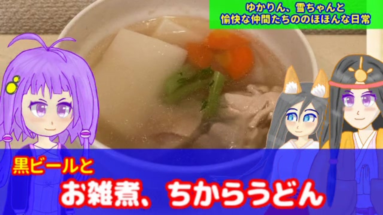 こんにちは、一人でも仙人です。<br>今年は初投稿なので、あけましておめでとございます!、ですね<br><br>今回はMr.磁石さん主催の<br>「第三回ソフトウェアトーク新春アクション祭り」に参加させていただきました<br>バトルボイスロイドのお祭りですね<br>バトルボイスロイド要素は動画開始から5分したあたりで、約1分ほどの短い時間です<br>過度な期待はせずに、冷やかし半分で見てくださいね💦<br><br>Mr.磁石さんの告知動画はこちらです<br>→ <a href="https://www.nicovideo.jp/watch/sm45490919" class="watch">sm45490919</a><br>よかったらご覧ください、ちょっと世界が広がるかもしれませんね<br>(^0^)<br><br>その他はいつも通りの<br>「VOICEROIDキッチン」、「ボイ酒ロイド」のおバカ動画です<br>寒い時期にピッタリのお雑煮と、ちからうどんを作ってみました<br><br><br>【注意?】場面やご覧になるデバイスによっては<br> 話し声より、BGMが大きくなる可能性があります<br> 新しいパソコンで編集したから、設定が変わっているのかな??<br> ご自身のデバイスで音量調整などをしてくださいね<br> お手数おかけしてごめんなさい・・・<br> (爆音とかいうわけではないので、そこは安心してください)<br> m(_ _)m<br><br><br>前 → <a href="https://www.nicovideo.jp/watch/sm45752091" class="watch">sm45752091</a><br>次 → <a href="https://www.nicovideo.jp/watch/sm45859105" class="watch">sm45859105</a><br><br><br>今回も、投稿祭ということで調子に乗って30分近くの長時間動画になっています。<br>お時間のある時、ご飯を食べながら、まったりしながら<br>あとは倍速などを活用しつつ、楽しんでいただけたら嬉しいです<br>(^v^;ゞ<br><br><br>「広告、フォロー、いいね!、コメントをしてくださったみなさま」<br>本当にありがとうございます!<br>この動画の視聴者さんは本当に暖かい人が多い!<br>よかったら、コメントを通じて仲良くして行って下さいね<br><br>また、うぽつ、おつなどの足跡コメントも増えてきているので嬉しい限りです<br>これは本当に動画作成のモチベーションに直結します<br>ありがとうございます!<br><br><br>それでは、今日も<br>おバカな、のほほん動画をお楽しみください!<br>p(^v^)q<br><br />使用したツール、素材、音楽など<br><br>AVIUTL<br>FireAlpaca<br>PSDtoolKIT<br>Cakewalk by BandLab<br>Google gemini<br>A.I.VOICE2:結月ゆかり<br>VOICEVOX<br>(トーク、ソング):ずんだもん、WhiteCUL、四国めたん、<br> ちび式じい、後鬼、櫻歌ミコ<br> 青山龍星、中国うさぎ、波音リツ<br> 満別花丸、雨晴はう、小夜/sayo<br> 冥鳴ひまり<br><br>ニコニコモンズ 様<br>いらすとや 様<br><br>ポルゼンヌ小林 様<br>mozell 様<br>G2ーMIDI 様<br>Atelier Nonta 様<br>MOMIZizm MUSiC(もみじば) 様<br>中村イネ 様<br><br>*必ずしも、すべての動画で上記のツール全部を<br> 使っているわけではないので、<br> そこはご了承くださいませ m(_ _)m
