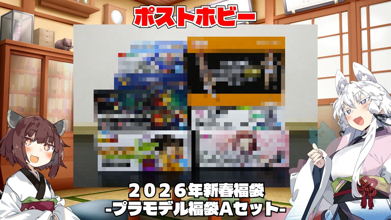 あけおめことよろです。<br>ポストホビーさまの福袋を購入出来たので開封しました。<br><br>◆出演<br>VOICEROID2:東北イタコ<br>VOICEPEAK:東北きりたん<br><br>◆お借りした素材など<br>キャラクター立ち絵<br> かれい さま:<a href="https://www.fanbox.cc/@flatfish" target="_blank" rel="noopener nofollow">https://www.fanbox.cc/@flatfish</a><br> ベルナ さま<br>音楽<br> DOVA-SYNDOROME さま<br> KK さま:<a href="https://dova-s.jp/_contents/author/profile024.html" target="_blank" rel="noopener nofollow">https://dova-s.jp/_contents/author/profile024.html</a><br> (昼下がり気分)<br> maruya328 さま<br> (上弦の邂逅)<br> 効果音ラボ さま:<a href="https://soundeffect-lab.info/" target="_blank" rel="noopener nofollow">https://soundeffect-lab.info/</a><br>その他<br> アイコンアニメ素材 @UDMP さま:<a href="https://demsato.booth.pm/" target="_blank" rel="noopener nofollow">https://demsato.booth.pm/</a>