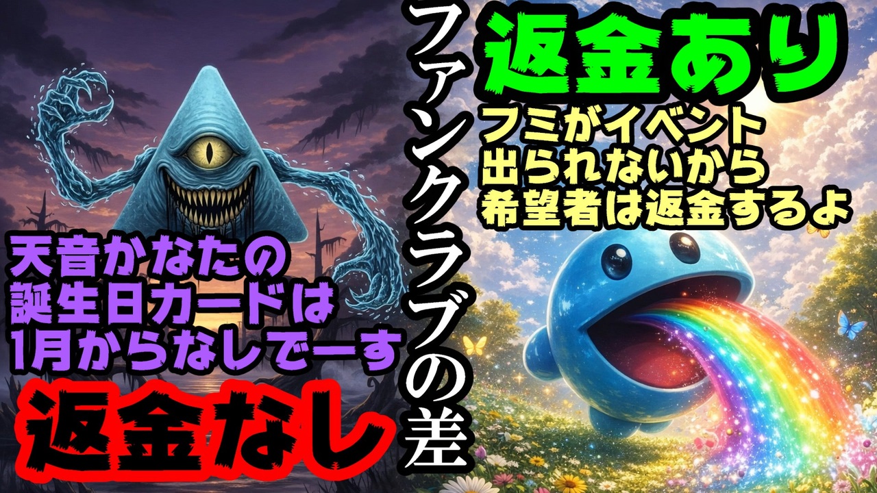 2025年12月10日に返金アナウンスをしなかったホロライブファンクラブと12月26日に返金対応を発表したにじさんじファンクラブの差が話題になっています。<br><br>引用<br><a href="https://x.com/nijisanji_app/status/2007708659128975562" target="_blank" rel="noopener nofollow">https://x.com/nijisanji_app/status/2007708659128975562</a><br><br>Youtube <a href="https://www.youtube.com/@V_Virgin_Mary" target="_blank" rel="noopener nofollow">https://www.youtube.com/@V_Virgin_Mary</a><br>twitter <a href="https://twitter.com/V_Virgin_Mary" target="_blank" rel="noopener nofollow">https://twitter.com/V_Virgin_Mary</a><br><br>使用素材 高品質なフリー動画素材 - Pixabay <a href="https://pixabay.com/ja/videos" target="_blank" rel="noopener nofollow">https://pixabay.com/ja/videos</a><br><br>#切り抜き #切り抜き動画 #ゆっくり解説 #VOICEROID #VOICEROID解説 #vtuber #vtubers #バーチャル #ブイチューバー