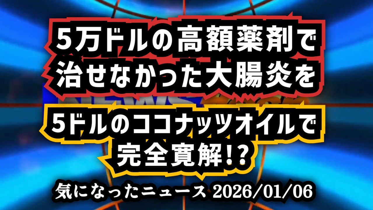 【信じるか信じないかはあなた次第】◆5万ドルの薬剤で治せなかった大腸炎を5ドルのココナッツオイルで改善した論文【現代医療では考えられない改善例】<br><br>ココナッツオイルで大腸炎が完全寛解<br><br>あらすじ<br>クローン病の手術後、使われなくなった大腸に炎症が起きる空置大腸炎。通常治療が効かず手術も検討された32歳女性に対し、ココナッツオイルの局所塗布を実施。1週で腹痛が改善、6週で出血が消失、12週で完全寛解に到達した。高額薬剤では改善しなかった炎症が、自然由来の局所治療で長期安定した経過を示した症例報告である。<br><br>◆今回の台本&詳細<a href="https://keiichiro8140.hatenablog.com/entry/26010666222" target="_blank" rel="noopener nofollow">https://keiichiro8140.hatenablog.com/entry/26010666222</a><br><br>◆これまでの動画<a href="https://x.gd/sPXoJ" target="_blank" rel="noopener nofollow">https://x.gd/sPXoJ</a><br><br>◆もしも(BAN)の時のためのマイリンク集<a href="https://lit.link/K-16_News44" target="_blank" rel="noopener nofollow">https://lit.link/K-16_News44</a><br><br>ご覧いただきありがとうございます<br>m(_ _)m<br><br>気になったニュース 2026/01/06<br><br />著作権、肖像権に配慮して作成しております。<br><br>◆気になったニュースの台本!?<br>メモ代わりに作った台本をそのままあげてます<br><a href="https://keiichiro8140.hatenablog.com/." target="_blank" rel="noopener nofollow">https://keiichiro8140.hatenablog.com/.</a><br><br><br>ここからはシリーズ紹介<br><br><br>◆ ワクチン解毒・デトックス<br><a href="https://x.gd/fZweg" target="_blank" rel="noopener nofollow">https://x.gd/fZweg</a><br><br>◆ウイリアム・マキス博士のがん治療(イベルメクチン・フェンベンダゾール等)<br><a href="https://x.gd/AtFYS" target="_blank" rel="noopener nofollow">https://x.gd/AtFYS</a><br><br>◆予防接種健康被害救済制度<br><a href="https://x.gd/0xK9x" target="_blank" rel="noopener nofollow">https://x.gd/0xK9x</a><br><br>◆気になったニュース #1501~<br><br>◆ 【ショートver】気になったニュース<br><a href="https://x.gd/7MxXC" target="_blank" rel="noopener nofollow">https://x.gd/7MxXC</a><br><br>◆ 気になったニュース #1001~<br><a href="https://x.gd/Lp8gv" target="_blank" rel="noopener nofollow">https://x.gd/Lp8gv</a><br><br>◆ 気になったニュース #501~<br><a href="https://x.gd/EmbS4" target="_blank" rel="noopener nofollow">https://x.gd/EmbS4</a><br><br>◆ 気になったニュース #1~#500<br><a href="https://x.gd/uPhNb" target="_blank" rel="noopener nofollow">https://x.gd/uPhNb</a><br><br>◆ X(旧Twitter)・テレグラムで気になった情報<br><a href="https://x.gd/YG6FT" target="_blank" rel="noopener nofollow">https://x.gd/YG6FT</a><br><br>◆ 日比谷5万人パレードデ⚪生放送アーカイブ動画<br><a href="https://x.gd/3CHJv" target="_blank" rel="noopener nofollow">https://x.gd/3CHJv</a><br><br>◆日比谷5万人パレード⚪モのマイリスト作ってみました<br><a href="https://nico.ms/mylist/76828848?ref=sp_other" target="_blank" rel="noopener nofollow">https://nico.ms/mylist/76828848?ref=sp_other</a><br><br>◆3.30 令和の百姓⚪⚪<br><a href="https://www.nicovideo.jp/series/511791?ref=garage_share_other" target="_blank" rel="noopener nofollow">https://www.nicovideo.jp/series/511791?ref=garage_share_other</a><br><br>◆ 及川幸久さんの【XNEWS】シリーズ<br><a href="https://x.gd/3k78K" target="_blank" rel="noopener nofollow">https://x.gd/3k78K</a><br><br>◆これまでの動画<a href="https://x.gd/sPXoJ" target="_blank" rel="noopener nofollow">https://x.gd/sPXoJ</a><br><br>◆もしも(BAN)の時のためのマイリンク集<a href="https://lit.link/K-16_News44" target="_blank" rel="noopener nofollow">https://lit.link/K-16_News44</a><br><br>