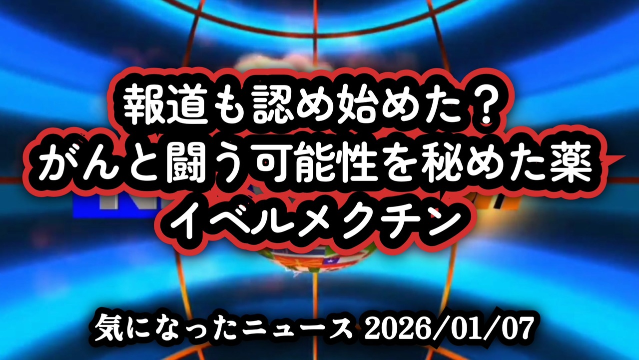 【報道も認め始めた?】◆がんと闘う可能性を秘めた薬「イベルメクチン」がん治療の常識が変わる?イベルメクチンの可能性と医師・ASKAが語る真実<br><br>がんに効く?イベルメクチンの真実<br><br>あらすじ<br>がん治療は手術・抗がん剤・放射線が中心とされてきたが、今、イベルメクチンという寄生虫駆除薬が新たながん治療の可能性として注目されている。ノーベル賞を受賞した大村智博士が発見し、安全性が高く経口で使えるこの薬は、免疫や代謝に作用し、がん細胞やがん幹細胞の抑制が示唆されている。臨床研究は途上だが、世界各国の医師の証言やアーティストのASKA氏の発信を通じ、医療の真実と代替医療の在り方が問われている<br><br>◆今回の台本&詳細<a href="https://keiichiro8140.hatenablog.com/entry/26010777111" target="_blank" rel="noopener nofollow">https://keiichiro8140.hatenablog.com/entry/26010777111</a><br><br>◆これまでの動画<a href="https://x.gd/sPXoJ" target="_blank" rel="noopener nofollow">https://x.gd/sPXoJ</a><br><br>◆もしも(BAN)の時のためのマイリンク集<a href="https://lit.link/K-16_News44" target="_blank" rel="noopener nofollow">https://lit.link/K-16_News44</a><br><br>ご覧いただきありがとうございます<br>m(_ _)m<br><br>気になったニュース 2026/01/07<br><br />著作権、肖像権に配慮して作成しております。<br><br>◆気になったニュースの台本!?<br>メモ代わりに作った台本をそのままあげてます<br><a href="https://keiichiro8140.hatenablog.com/." target="_blank" rel="noopener nofollow">https://keiichiro8140.hatenablog.com/.</a><br><br><br>ここからはシリーズ紹介<br><br><br>◆ ワクチン解毒・デトックス<br><a href="https://x.gd/fZweg" target="_blank" rel="noopener nofollow">https://x.gd/fZweg</a><br><br>◆ウイリアム・マキス博士のがん治療(イベルメクチン・フェンベンダゾール等)<br><a href="https://x.gd/AtFYS" target="_blank" rel="noopener nofollow">https://x.gd/AtFYS</a><br><br>◆予防接種健康被害救済制度<br><a href="https://x.gd/0xK9x" target="_blank" rel="noopener nofollow">https://x.gd/0xK9x</a><br><br>◆気になったニュース #1501~<br><br>◆ 【ショートver】気になったニュース<br><a href="https://x.gd/7MxXC" target="_blank" rel="noopener nofollow">https://x.gd/7MxXC</a><br><br>◆ 気になったニュース #1001~<br><a href="https://x.gd/Lp8gv" target="_blank" rel="noopener nofollow">https://x.gd/Lp8gv</a><br><br>◆ 気になったニュース #501~<br><a href="https://x.gd/EmbS4" target="_blank" rel="noopener nofollow">https://x.gd/EmbS4</a><br><br>◆ 気になったニュース #1~#500<br><a href="https://x.gd/uPhNb" target="_blank" rel="noopener nofollow">https://x.gd/uPhNb</a><br><br>◆ X(旧Twitter)・テレグラムで気になった情報<br><a href="https://x.gd/YG6FT" target="_blank" rel="noopener nofollow">https://x.gd/YG6FT</a><br><br>◆ 日比谷5万人パレードデ⚪生放送アーカイブ動画<br><a href="https://x.gd/3CHJv" target="_blank" rel="noopener nofollow">https://x.gd/3CHJv</a><br><br>◆日比谷5万人パレード⚪モのマイリスト作ってみました<br><a href="https://nico.ms/mylist/76828848?ref=sp_other" target="_blank" rel="noopener nofollow">https://nico.ms/mylist/76828848?ref=sp_other</a><br><br>◆3.30 令和の百姓⚪⚪<br><a href="https://www.nicovideo.jp/series/511791?ref=garage_share_other" target="_blank" rel="noopener nofollow">https://www.nicovideo.jp/series/511791?ref=garage_share_other</a><br><br>◆ 及川幸久さんの【XNEWS】シリーズ<br><a href="https://x.gd/3k78K" target="_blank" rel="noopener nofollow">https://x.gd/3k78K</a><br><br>◆これまでの動画<a href="https://x.gd/sPXoJ" target="_blank" rel="noopener nofollow">https://x.gd/sPXoJ</a><br><br>◆もしも(BAN)の時のためのマイリンク集<a href="https://lit.link/K-16_News44" target="_blank" rel="noopener nofollow">https://lit.link/K-16_News44</a><br><br>