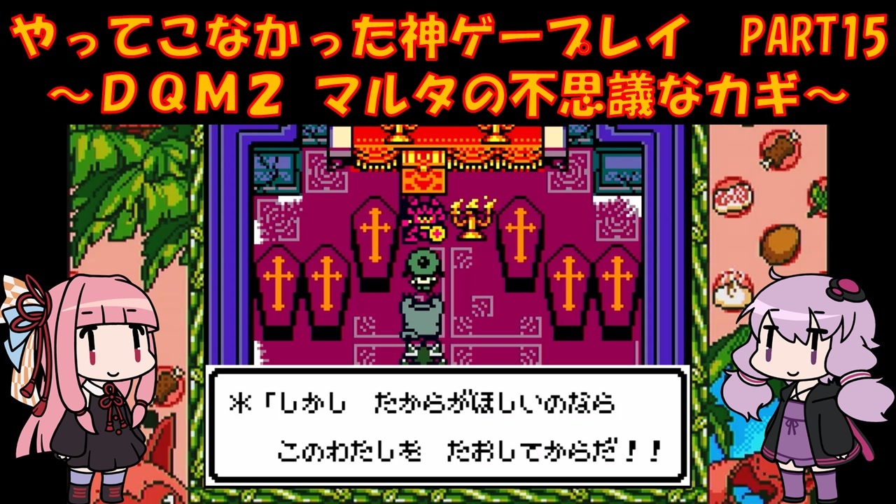 GBC ドラゴンクエストモンスターズ2 マルタの不思議なカギをプレイ<br>ゆかりさんはメジャーじゃないゲームをやる俺カッケー族だったのでドラクエをやったことがありませんでした(DSのⅤ以外)<br><br>茜:やっぱボスがおらんとな<br>ゆ:ナイトリッチですか<br><br>PART1:<a href="https://www.nicovideo.jp/watch/sm45684209" target="_blank" rel="noopener nofollow">https://www.nicovideo.jp/watch/sm45684209</a><br><br>各DQシリーズ再生リスト<br><a href="https://garage.nicovideo.jp/niconico-garage/video/series/390298" target="_blank" rel="noopener nofollow">https://garage.nicovideo.jp/niconico-garage/video/series/390298</a><br><br><br>動画内で使用させていただいた素材<br>【イラスト】<br>結月ゆかり→山栗鼠様:<a href="https://seiga.nicovideo.jp/seiga/im5354179" target="_blank" rel="noopener nofollow">https://seiga.nicovideo.jp/seiga/im5354179</a><br>琴葉茜→山栗鼠様:<a href="https://seiga.nicovideo.jp/seiga/im5342445" target="_blank" rel="noopener nofollow">https://seiga.nicovideo.jp/seiga/im5342445</a><br><br>【音声】<br>A.I.Voice:琴葉茜<br><a href="https://aivoice.jp/product/kotonoha/" target="_blank" rel="noopener nofollow">https://aivoice.jp/product/kotonoha/</a><br><br>A.I.Voice:結月ゆかり<br><a href="https://aivoice.jp/product/yukari/" target="_blank" rel="noopener nofollow">https://aivoice.jp/product/yukari/</a><br><br>この動画で利用している株式会社スクウェア・エニックスを代表とする共同著作者が権利を所有する著作物及びスギヤマ工房有限会社が権利を所有する楽曲の転載・配布は禁止いたします。<br>© ARMOR PROJECT/BIRD STUDIO/SQUARE ENIX All Rights Reserved.<br>© SUGIYAMA KOBO