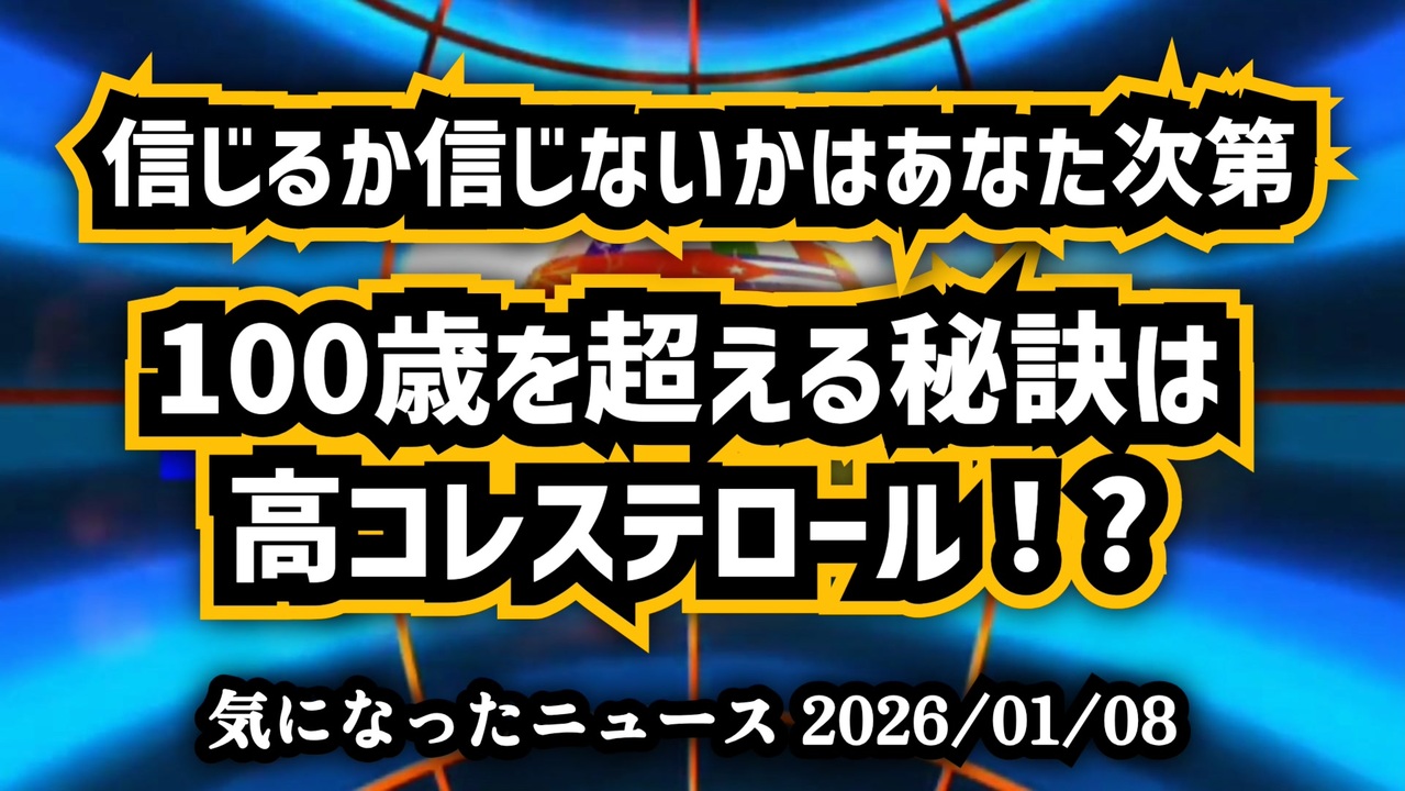 【信じるか信じないかはあなた次第】◆100歳を超える秘訣は高コレステロール!?80万人35年追跡で判明した衝撃の真実<br><br>コレステロールは悪じゃない<br><br>あらすじ<br>スウェーデンで80万人を35年間追跡した研究により、100歳超の長寿者は全員が高コレステロールだったことが判明。LDLが高いほど寿命が長い一方、低コレステロールは脳出血、がん、認知症、慢性疾患リスクを高める。スタチンの有効性にも疑問が示され、コレステロールは細胞、免疫、ホルモン、脳機能に不可欠とされる。低糖質と動物性栄養を重視し、種子油を避け、中性脂肪HDL比1.5未満を目指す食事が健康と長寿の鍵となる。<br><br>◆今回の台本&詳細<a href="https://keiichiro8140.hatenablog.com/entry/26010777333999" target="_blank" rel="noopener nofollow">https://keiichiro8140.hatenablog.com/entry/26010777333999</a><br><br>◆これまでの動画<a href="https://x.gd/sPXoJ" target="_blank" rel="noopener nofollow">https://x.gd/sPXoJ</a><br><br>◆もしも(BAN)の時のためのマイリンク集<a href="https://lit.link/K-16_News44" target="_blank" rel="noopener nofollow">https://lit.link/K-16_News44</a><br><br>ご覧いただきありがとうございます<br>m(_ _)m<br><br>気になったニュース 2026/01/08<br><br />著作権、肖像権に配慮して作成しております。<br><br>◆気になったニュースの台本!?<br>メモ代わりに作った台本をそのままあげてます<br><a href="https://keiichiro8140.hatenablog.com/." target="_blank" rel="noopener nofollow">https://keiichiro8140.hatenablog.com/.</a><br><br><br>ここからはシリーズ紹介<br><br><br>◆ ワクチン解毒・デトックス<br><a href="https://x.gd/fZweg" target="_blank" rel="noopener nofollow">https://x.gd/fZweg</a><br><br>◆ウイリアム・マキス博士のがん治療(イベルメクチン・フェンベンダゾール等)<br><a href="https://x.gd/AtFYS" target="_blank" rel="noopener nofollow">https://x.gd/AtFYS</a><br><br>◆予防接種健康被害救済制度<br><a href="https://x.gd/0xK9x" target="_blank" rel="noopener nofollow">https://x.gd/0xK9x</a><br><br>◆気になったニュース #1501~<br><br>◆ 【ショートver】気になったニュース<br><a href="https://x.gd/7MxXC" target="_blank" rel="noopener nofollow">https://x.gd/7MxXC</a><br><br>◆ 気になったニュース #1001~<br><a href="https://x.gd/Lp8gv" target="_blank" rel="noopener nofollow">https://x.gd/Lp8gv</a><br><br>◆ 気になったニュース #501~<br><a href="https://x.gd/EmbS4" target="_blank" rel="noopener nofollow">https://x.gd/EmbS4</a><br><br>◆ 気になったニュース #1~#500<br><a href="https://x.gd/uPhNb" target="_blank" rel="noopener nofollow">https://x.gd/uPhNb</a><br><br>◆ X(旧Twitter)・テレグラムで気になった情報<br><a href="https://x.gd/YG6FT" target="_blank" rel="noopener nofollow">https://x.gd/YG6FT</a><br><br>◆ 日比谷5万人パレードデ⚪生放送アーカイブ動画<br><a href="https://x.gd/3CHJv" target="_blank" rel="noopener nofollow">https://x.gd/3CHJv</a><br><br>◆日比谷5万人パレード⚪モのマイリスト作ってみました<br><a href="https://nico.ms/mylist/76828848?ref=sp_other" target="_blank" rel="noopener nofollow">https://nico.ms/mylist/76828848?ref=sp_other</a><br><br>◆3.30 令和の百姓⚪⚪<br><a href="https://www.nicovideo.jp/series/511791?ref=garage_share_other" target="_blank" rel="noopener nofollow">https://www.nicovideo.jp/series/511791?ref=garage_share_other</a><br><br>◆ 及川幸久さんの【XNEWS】シリーズ<br><a href="https://x.gd/3k78K" target="_blank" rel="noopener nofollow">https://x.gd/3k78K</a><br><br>◆これまでの動画<a href="https://x.gd/sPXoJ" target="_blank" rel="noopener nofollow">https://x.gd/sPXoJ</a><br><br>◆もしも(BAN)の時のためのマイリンク集<a href="https://lit.link/K-16_News44" target="_blank" rel="noopener nofollow">https://lit.link/K-16_News44</a><br><br>
