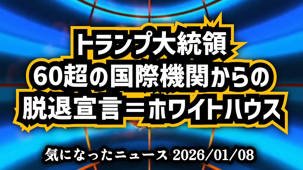 ◆トランプ大統領、60超の国際機関からの脱退宣言=ホワイトハウス 主権と税金を守る『アメリカファースト』<br><br>国際機関よりアメリカファースト<br><br>あらすじ<br>第2次トランプ政権は、国益に反すると判断した60以上の国際機関からの脱退を正式決定した。対象は国連関連31機関、その他国際組織35。急進的気候政策やグローバルガバナンス偏重、主権侵害を批判し、資金拠出を停止。その財源を国内優先政策へ振り向ける狙いだ。すでに国連人権理事会、UNRWA、ユネスコから離脱し、WHOやパリ協定も対象。日本でも租税特別措置や補助金見直し提案が始まり、今後の主権と財政の在り方が問われている。<br><br>◆今回の台本&詳細<a href="https://keiichiro8140.hatenablog.com/entry/26010888111" target="_blank" rel="noopener nofollow">https://keiichiro8140.hatenablog.com/entry/26010888111</a><br><br>◆これまでの動画<a href="https://x.gd/sPXoJ" target="_blank" rel="noopener nofollow">https://x.gd/sPXoJ</a><br><br>◆もしも(BAN)の時のためのマイリンク集<a href="https://lit.link/K-16_News44" target="_blank" rel="noopener nofollow">https://lit.link/K-16_News44</a><br><br>ご覧いただきありがとうございます<br>m(_ _)m<br><br>気になったニュース 2026/01/08<br><br />著作権、肖像権に配慮して作成しております。<br><br>◆気になったニュースの台本!?<br>メモ代わりに作った台本をそのままあげてます<br><a href="https://keiichiro8140.hatenablog.com/." target="_blank" rel="noopener nofollow">https://keiichiro8140.hatenablog.com/.</a><br><br><br>ここからはシリーズ紹介<br><br><br>◆ ワクチン解毒・デトックス<br><a href="https://x.gd/fZweg" target="_blank" rel="noopener nofollow">https://x.gd/fZweg</a><br><br>◆ウイリアム・マキス博士のがん治療(イベルメクチン・フェンベンダゾール等)<br><a href="https://x.gd/AtFYS" target="_blank" rel="noopener nofollow">https://x.gd/AtFYS</a><br><br>◆予防接種健康被害救済制度<br><a href="https://x.gd/0xK9x" target="_blank" rel="noopener nofollow">https://x.gd/0xK9x</a><br><br>◆気になったニュース #1501~<br><br>◆ 【ショートver】気になったニュース<br><a href="https://x.gd/7MxXC" target="_blank" rel="noopener nofollow">https://x.gd/7MxXC</a><br><br>◆ 気になったニュース #1001~<br><a href="https://x.gd/Lp8gv" target="_blank" rel="noopener nofollow">https://x.gd/Lp8gv</a><br><br>◆ 気になったニュース #501~<br><a href="https://x.gd/EmbS4" target="_blank" rel="noopener nofollow">https://x.gd/EmbS4</a><br><br>◆ 気になったニュース #1~#500<br><a href="https://x.gd/uPhNb" target="_blank" rel="noopener nofollow">https://x.gd/uPhNb</a><br><br>◆ X(旧Twitter)・テレグラムで気になった情報<br><a href="https://x.gd/YG6FT" target="_blank" rel="noopener nofollow">https://x.gd/YG6FT</a><br><br>◆ 日比谷5万人パレードデ⚪生放送アーカイブ動画<br><a href="https://x.gd/3CHJv" target="_blank" rel="noopener nofollow">https://x.gd/3CHJv</a><br><br>◆日比谷5万人パレード⚪モのマイリスト作ってみました<br><a href="https://nico.ms/mylist/76828848?ref=sp_other" target="_blank" rel="noopener nofollow">https://nico.ms/mylist/76828848?ref=sp_other</a><br><br>◆3.30 令和の百姓⚪⚪<br><a href="https://www.nicovideo.jp/series/511791?ref=garage_share_other" target="_blank" rel="noopener nofollow">https://www.nicovideo.jp/series/511791?ref=garage_share_other</a><br><br>◆ 及川幸久さんの【XNEWS】シリーズ<br><a href="https://x.gd/3k78K" target="_blank" rel="noopener nofollow">https://x.gd/3k78K</a><br><br>◆これまでの動画<a href="https://x.gd/sPXoJ" target="_blank" rel="noopener nofollow">https://x.gd/sPXoJ</a><br><br>◆もしも(BAN)の時のためのマイリンク集<a href="https://lit.link/K-16_News44" target="_blank" rel="noopener nofollow">https://lit.link/K-16_News44</a><br><br>