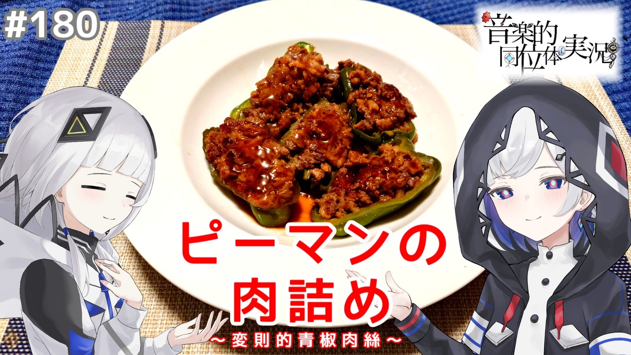 180品目。<br>今週はピーマンの肉詰めを作りました。<br>「ひき肉の代わりにバラ肉の細切りを使うと面白いんじゃないの?」と言う発想です。<br>言ってしまえば変則的な青椒肉絲ですね。<br>ですがこれ、これまで動画で作ってきた料理の中で5本の指に入る位に美味しい。<br>個人的ヒット作です。<br><br>可不の調理実習室のマイリストはこちらから:<a href="https://www.nicovideo.jp/mylist/74018156" target="_blank" rel="noopener">mylist/74018156</a><br><br><span style="color: #ff0000;"><strong>コメントやいいね、チャンネル登録して頂けると喜びます!</strong></span><br><br>投稿者のYoutubeチャンネルはこちらから→<a href="https://www.youtube.com/channel/UCmUSeUsaOe1HNTwuFVxTIEQ" target="_blank" rel="noopener nofollow">https://www.youtube.com/channel/UCmUSeUsaOe1HNTwuFVxTIEQ</a><br>X(旧Twitter)もフォローお願いします!→<a href="https://twitter.com/afterglow9702" target="_blank" rel="noopener nofollow">https://twitter.com/afterglow9702</a><br><br>使用ツール:NodoAme(作:いぬいぬGames様 <a href="https://www.nicovideo.jp/watch/sm98013232" class="watch">sm98013232</a>)<br>演技指導:可不→すずきつづみ(Cevio AI)<br>立ち絵:はゆ茶様 <a href="https://www.nicovideo.jp/watch/sm39971378" class="watch">sm39971378</a> <a href="https://seiga.nicovideo.jp/seiga/im10877460" target="_blank" rel="noopener">im10877460</a><br> うらのす海老様 <a href="https://seiga.nicovideo.jp/seiga/im11531609" target="_blank" rel="noopener">im11531609</a><br> 努力不足様 <a href="https://seiga.nicovideo.jp/seiga/im11156725" target="_blank" rel="noopener">im11156725</a><br>可不・裏命イラスト:らいす様 <a href="https://twitter.com/rice01200120" target="_blank" rel="noopener nofollow">https://twitter.com/rice01200120</a><br>シリーズロゴ:misho様<br>BGM:騒音の無い世界様(コンテンツツリー参照)<br>SE:効果音ラボ様 <a href="https://soundeffect-lab.info" target="_blank" rel="noopener nofollow">https://soundeffect-lab.info</a><br><br>※今回のレシピはFOODIE様より一部引用した、投稿者オリジナルレシピです。