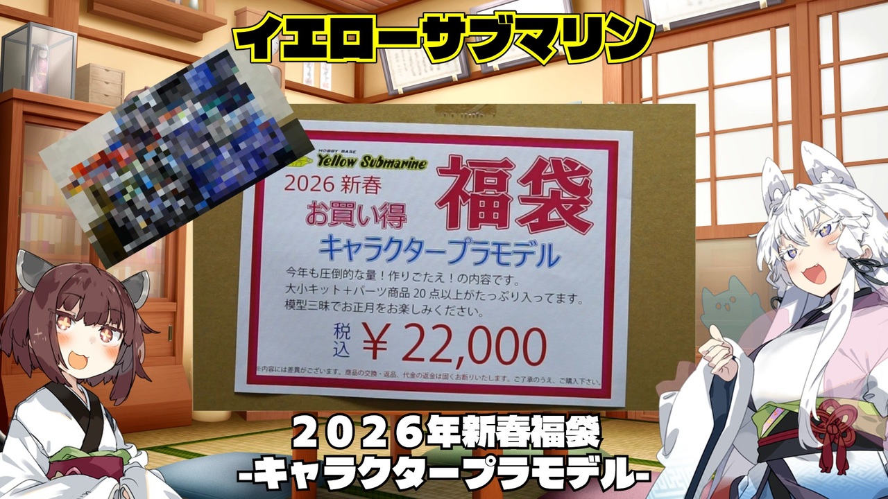 あけおめことよろその2です。<br>イエローサブマリンさまの福袋を購入して持ち帰って来たので開封しました。<br><br>◆出演<br>VOICEROID2:東北イタコ<br>VOICEPEAK:東北きりたん<br><br>◆お借りした素材など<br>キャラクター立ち絵<br> かれい さま:<a href="https://www.fanbox.cc/@flatfish" target="_blank" rel="noopener nofollow">https://www.fanbox.cc/@flatfish</a><br> ベルナ さま<br>音楽<br> DOVA-SYNDOROME さま<br> KK さま:<a href="https://dova-s.jp/_contents/author/profile024.html" target="_blank" rel="noopener nofollow">https://dova-s.jp/_contents/author/profile024.html</a><br> (昼下がり気分)<br> maruya328 さま<br> (上弦の邂逅)<br> 効果音ラボ さま:<a href="https://soundeffect-lab.info/" target="_blank" rel="noopener nofollow">https://soundeffect-lab.info/</a><br>その他<br> アイコンアニメ素材 @UDMP さま:<a href="https://demsato.booth.pm/" target="_blank" rel="noopener nofollow">https://demsato.booth.pm/</a>