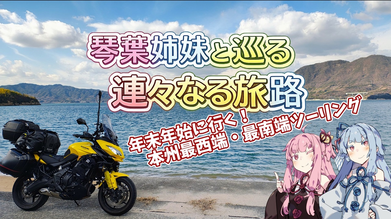華やかさはないけど、なぜか印象に残る作品ってありませんか?<br>そんな作品を目指して、これからも作っていきたいと思います。<br>琴葉姉妹の声を聞いたとき、「この雰囲気なら、旅の空気やテンポを残せるかもしれない」と感じました。<br>今回は、姉妹で走ってる感じを大事にしながら、掛け合い中心で進めてみます。<br><br>そして、動画制作の最初の一歩をくれた「ゆっくり」にも感謝を込めて・・・ありがとう。<br><br>今回はPart0(プロローグ)で説明がメインです。<br>Part1に入れるには変更点が多いので、先にこの回を作りました。<br>・シリーズ名変更<br> 「Versys650とゆっくりで行く!」<br> →「琴葉姉妹と巡る 連々なる旅路」<br>・音声変更<br> ゆっくり<br> → 琴葉姉妹(A.I.VOICE2)<br>・カメラ変更<br> AKASO360 → OSMO360<br>・簡単な日程<br>・新オープニング(20秒)<br>・Part1導入<br><br>次回から本編(Part1)です。<br>Part3からが旅の本番(九州上陸)で、<br>シリーズは、基本半〜1日毎で合計10-15本・1本辺り5-10分にしたいと思ってます。<br><br>本動画 Part0(プロローグ)→次の動画 Part1(埼玉~掛川) 1/16 20:00に投稿します。<br><br>撮影カメラ:OSMO360(動画)MOTOROLA EDGE 50S PRO(写真)<br>撮影バイク:VERSYS650(2015)<br><br>Music:騒音のない世界<br>まどろみの色<br><a href="https://youtu.be/GUpCghz-x2o?si=Zrfo1nLXgUnWWLIZ" target="_blank" rel="noopener nofollow">https://youtu.be/GUpCghz-x2o?si=Zrfo1nLXgUnWWLIZ</a><br><br>Xやってます。旅の写真や製作についてポストしてます。<br><a href="https://x.com/azurebird?t=7vv2dCyR5_1wh0o92CNUbQ&s=09" target="_blank" rel="noopener nofollow">https://x.com/azurebird?t=7vv2dCyR5_1wh0o92CNUbQ&s=09</a><br><br>あと、前回動画への広告、コメント、いいね!本当にありがとうございます。<br>冒頭でも少し触れましたが、お礼やコメント返しについては、別動画で数Part毎に上げさせていただきます。<br>というのも、Part1以降は旅の雰囲気を大切にした構成にしたく、冒頭や締めの挨拶等すべて省く形にします。<br>ご理解いただけると嬉しいです。<br><br>PS. 導入のカモメ、エースコンバット4のOP導入っぽくしたかったんですが、今の私の技術では無理でした!<br>いや、ズームすれば良かっ・・・今回は時間切れです。<br>本編で頑張ります!長文失礼しました!