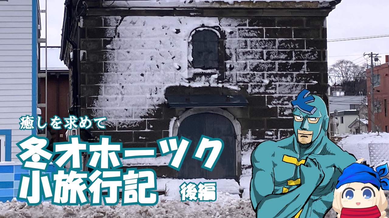 【フリモメン誕生祭2026~タカスィーを添えて~】参加させていただきました。<br><br>今回は2025年12月20日~21日に癒しを求めて、1泊2日の北海道北見市を中心とした小旅行をして参りました。マニアックなスポットが好きな偏屈な投稿者が珍しくメジャー処に赴いております。その時の思い出をフリモさんと植物の方(タカスィ要素有)に語っていただきました。こちらは後編になります。<br>当投稿祭の主催者様の持ちネタがあちこちで出てきます。さぁ元ネタはどこからでしょう??<br>車載動画も織り交ぜておりますが、1倍~20倍速でお届けしております。<br><br>癒しスポット③ 流氷街道網走 <a href="#" class="seekTime" data-seekTime="2:15" onclick="seekNicoPlayer('#2:15'); return false;">#2:15</a><br>癒しスポット④ 北見ハッカ記念館 <a href="#" class="seekTime" data-seekTime="10:00" onclick="seekNicoPlayer('#10:00'); return false;">#10:00</a><br>癒しスポット⑤ ちゃちゃワールド <a href="#" class="seekTime" data-seekTime="16:03" onclick="seekNicoPlayer('#16:03'); return false;">#16:03</a><br>聖地巡礼 道道102号線 <a href="#" class="seekTime" data-seekTime="3:49" onclick="seekNicoPlayer('#3:49'); return false;">#3:49</a><br><br>オホーツク地方の文化は深いです。開拓使から始まり、現在に至るまで記録がしっかりと残っているのもありますが、道央や函館管内とは違う雰囲気があります。過酷な環境や土地柄の役割がまた違うのもあるかもしれません。一度二度の来訪では堪能するの難しいのと感じます。<br>皆さんもオホーツクに赴いてドップリとその深い沼にハマりましょう。<br><br>カエサルのイラスト:イラスト屋様