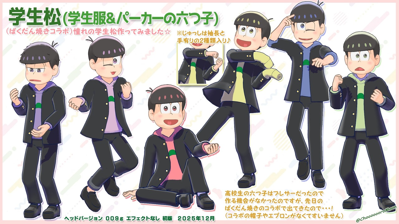 学生松テスト&紹介動画です。X(旧twitter)に投稿したものを手直しなどしました!<br>学生松配布中です~<br><br>今日だけ三つ子気分というのはyoutubeなどで活躍のリアル三つ子さんのシンクロアクロバットがめちゃカッコイイので意識してみました!<br>(去年リアル三つ子さんが雑誌の企画で(松じゃない)六つ子役やったの楽しかったので・・・!)<br><br>モデル配布はコチラです~<br>【モデル配布】学生松(学生服&パーカーの六つ子)<br><a href="https://seiga.nicovideo.jp/seiga/im11720454" target="_blank" rel="noopener nofollow">https://seiga.nicovideo.jp/seiga/im11720454</a><br><br>(追記!)<br>予告のアクション動画できました!<br>【MMDおそ松さん】長兄松がアクションしてみた<br><a href="https://www.nicovideo.jp/watch/sm45852426" target="_blank" rel="noopener nofollow">https://www.nicovideo.jp/watch/sm45852426</a><br><br><strong>*広告ありがとうございます!*</strong><br>キオン様、haco様<br><br><br /><br>シリーズ→<a href="https://www.nicovideo.jp/user/58065803/video" target="_blank" rel="noopener nofollow">https://www.nicovideo.jp/user/58065803/video</a><br><span style="font-size: 14px;">モデル出演ALL→</span><span style="color: #006699; font-size: 14px;"><a href="https://www.nicovideo.jp/mylist/60146071" target="_blank" rel="noopener">mylist/60146071</a></span><span style="font-size: 14px;"> </span><br>twitter(X) @ChooooooroMoon <br>フォロしていただけると喜びます(*ノωノ)<br>
