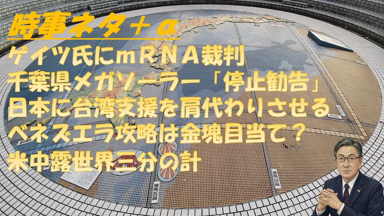 ◆井上正康<br>ビル・ゲイツに「mRNAワクチンによる数百万人の殺人容疑で裁判を受けるよう命じる判決」 オランダ裁判所‼️今年こそこの裁判を前に進めよう‼️<br><br>SATORISM GOLDEN TV.85「米国の暴走・日本の妄想~米中ディールを警戒せよ!~」<br>・力による現状変更に拍手喝采を送っている保守は・・<br>・宇山卓栄:米国の国益のためには国際法は好きにして良い<br>・米中の直接ディール<br><br>緊急LIVE トランプとイラン最新情勢 【及川幸久】ライブ配信<br><br>◆和田秀樹<br>【幸齢党コーナー】高齢者はショッピングモールを活用せよ!<br><br>◆失敗小僧<br>中国が日本に輸出規制レアアース軍民両用品などについて<br><br>高市早苗が通常国会冒頭解散で2月に衆院選挙と報じたことについて<br><br>◆烏賀陽弘道<br>2026.1.10ウガ土 ナチ化するアメリカ 新春特別 質問なんでも受付<br>・南米に国家主権を認めていない<br><br>2026.1.12リチャード・コシミズ・チャンネル第126回<br>国家デフォルト状態のトランプ米国は巨額債務に充当する「即金」が欲しい<br>リチャード・コシミズです。イランとベネズエラの騒ぎを「米国の金欠」から、考察します。<br><br>◆イーロン・マスク<br>「3〜4年でOptimusロボットは人類最高の外科医を超える」<br><br>◆野口健<br>原状回復しない限り千葉県は「停止勧告」を引き下げないと。仮に業者が強行したら「中止命令」が現実味を帯びてくる。<br><br>◆田中宇<br>日本に台湾支援を肩代わりさせる<br>ベネズエラ支配 成功への道<br><br>◆古村治彦<br>世界の指導者から「存在が必要ではあるならず者(the indispensable rogue)」に変わるアメリカと共存する術を世界は学ぶ<br><br>#古村治彦<br>#田中宇<br>#野口健<br>#イーロン・マスク<br>#ビル・ゲイツ<br>#井上正康<br>#リチャード・コシミズ<br>#SATORISM<br>#和田秀樹