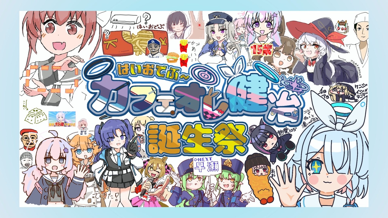 <span style="color: #4a86e8; font-size: 16px;"><strong>カフェオレ健冶</strong></span><span style="font-size: 16px;">さんの誕生日を記念して、</span><span style="font-size: 16px;"><i><u>25人</u></i></span><span style="font-size: 16px;">で合作をしました!!</span><span style="font-size: 10px;">はいおデブ〜 </span><br><br>メドレー単品:Coming Soon... <br>参加者リスト:<a href="https://www.nicovideo.jp/mylist/79134975" target="_blank" rel="noopener nofollow">https://www.nicovideo.jp/mylist/79134975</a> <br>YouTube版: <a href="https://youtu.be/D42uREc73-8" target="_blank" rel="noopener nofollow">https://youtu.be/D42uREc73-8</a><br><br><br><br><br><a target="_blank" href="https://qa.nicovideo.jp/faq/show/19424?site_domain=default" style="font-size: 13px;color: #657586; text-decoration: underline; line-height: 1.4">この動画は投稿者によって修正されました</a>