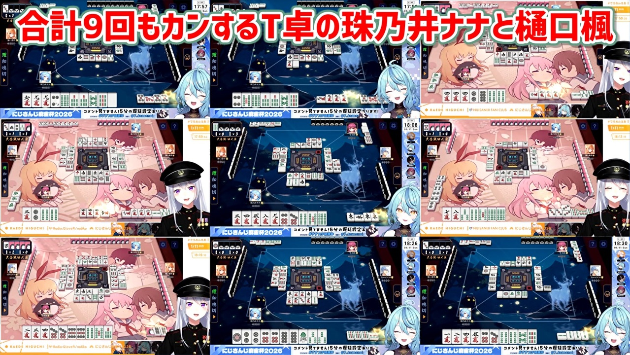 カン出過ぎィ!これこんなにポンポン出るもんだっけ?<br><br>本家参考動画<br>・珠乃井ナナ<br>【 #にじさんじ麻雀杯2026 】なんとかなれーッ!!!【にじさんじ/珠乃井ナナ】<br><a href="https://youtu.be/BpmGQ41woFE" target="_blank" rel="noopener nofollow">https://youtu.be/BpmGQ41woFE</a><br>・樋口楓<br>【#にじさんじ麻雀杯2026】T卓のTはタンのTやお~【にじさんじ / 樋口楓】<br><a href="https://youtu.be/oHPa4RQUoLs" target="_blank" rel="noopener nofollow">https://youtu.be/oHPa4RQUoLs</a><br><br>参考元チャンネル&X(Twitter)<br>・珠乃井ナナ<br><a href="https://www.youtube.com/@TamanoiNana" target="_blank" rel="noopener nofollow">https://www.youtube.com/@TamanoiNana</a><br><a href="https://x.com/7_tamanoi" target="_blank" rel="noopener nofollow">https://x.com/7_tamanoi</a><br>・樋口楓<br><a href="https://www.youtube.com/@HiguchiKaede" target="_blank" rel="noopener nofollow">https://www.youtube.com/@HiguchiKaede</a><br><a href="https://twitter.com/Higuchikaede" target="_blank" rel="noopener nofollow">https://twitter.com/Higuchikaede</a><br>・倉持めると<br><a href="https://www.youtube.com/@KuramochiMeruto" target="_blank" rel="noopener nofollow">https://www.youtube.com/@KuramochiMeruto</a><br><a href="https://twitter.com/k_meruto" target="_blank" rel="noopener nofollow">https://twitter.com/k_meruto</a><br>・酒寄颯馬<br><a href="https://www.youtube.com/@SakayoriSoma" target="_blank" rel="noopener nofollow">https://www.youtube.com/@SakayoriSoma</a><br><a href="https://x.com/sakayori_soma" target="_blank" rel="noopener nofollow">https://x.com/sakayori_soma</a><br><br>ニコニコのダイコンマンリスト<br>「バーチャルYouTuberシリーズ1~5」↓<br>1 <a href="https://www.nicovideo.jp/mylist/62551838" target="_blank" rel="noopener">mylist/62551838</a><br>2 <a href="https://www.nicovideo.jp/mylist/67858437" target="_blank" rel="noopener">mylist/67858437</a><br>3 <a href="https://www.nicovideo.jp/mylist/71340675" target="_blank" rel="noopener">mylist/71340675</a><br>4 <a href="https://www.nicovideo.jp/mylist/73995264" target="_blank" rel="noopener">mylist/73995264</a><br>5 <a href="https://www.nicovideo.jp/mylist/76618161" target="_blank" rel="noopener">mylist/76618161</a><br><br>ダイコンマンのTwitter<br><a href="https://twitter.com/Daikon_Man_V" target="_blank" rel="noopener nofollow">https://twitter.com/Daikon_Man_V</a>