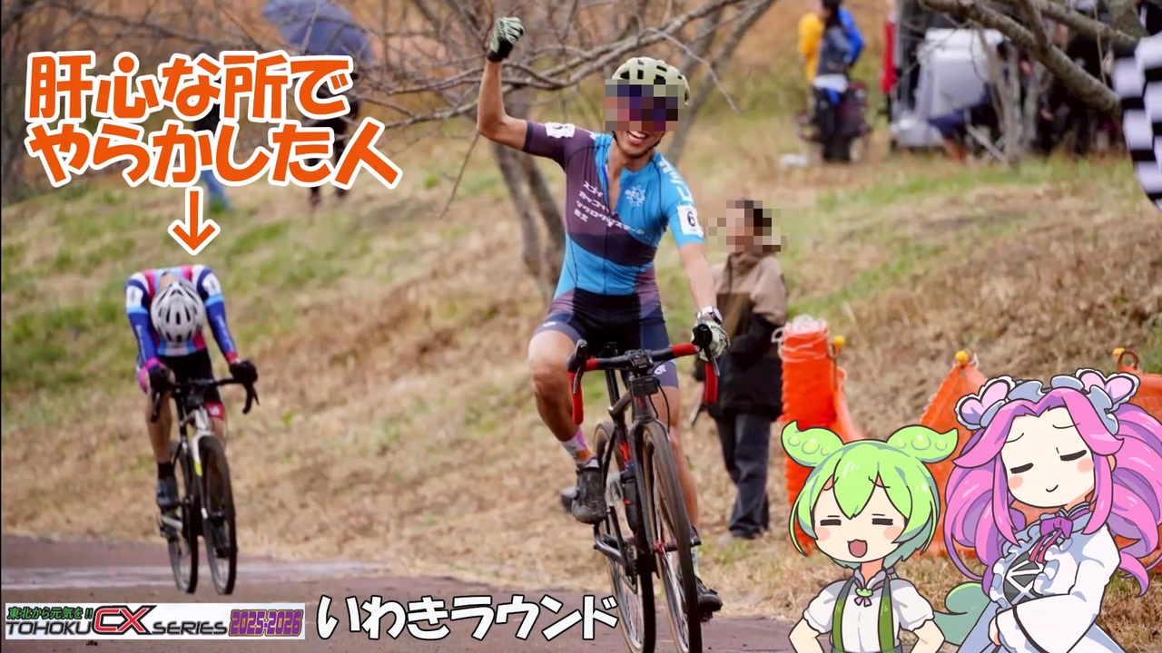 シクロクロスなる奇特な自転車競技について、ずんだもんに語ってもらいました。<br><br>< 前(東海 WNP ちょびっと全日本) <a href="https://www.nicovideo.jp/watch/sm45801517" class="watch">sm45801517</a>: 後(東北 蔵王) ><br><br>車で8時間超の長旅だった全日本の翌週は、30分で着いちゃうご近所コースへ。<br>東北シクロクロスのいわきラウンドに参戦してきました。<br><br>久しぶりのローカルレースで順位やポイントにピリ付くこともなく、<br>目の前に居る相手との勝負を思い切り楽しむことが出来ました。(なお勝敗)<br><br>一昨年のいわきラウンド:<a href="https://www.nicovideo.jp/watch/sm43273251" class="watch">sm43273251</a><br><br><br><br>------------お借りした素材--------------------------------------------------------------------------------<br>サムネの写真:ホンダ様(@hnd_0930)<br><br><編集・音声ソフト><br>ゆっくりMovieMaker4 饅頭遣い様 : <a href="https://commons.nicovideo.jp/works/nc236011" target="_blank" rel="noopener">nc236011</a><br>VOICEVOX:ずんだもん<br>VOICEVOX:四国めたん<br><br><立ち絵><br>ずんだもん立ち絵素材 坂本アヒル様 : <a href="https://seiga.nicovideo.jp/seiga/im10788496" target="_blank" rel="noopener">im10788496</a><br>四国めたん立ち絵素材 坂本アヒル様 : <a href="https://seiga.nicovideo.jp/seiga/im10791276" target="_blank" rel="noopener">im10791276</a><br><br><BGM・効果音><br>Assault ちぇあ様 : <a href="https://commons.nicovideo.jp/works/nc115484" target="_blank" rel="noopener">nc115484</a><br><br><BB・GB><br>三輪車に乗るずんだもんBB 山バジル様 : <a href="https://www.nicovideo.jp/watch/sm42307913" class="watch">sm42307913</a><br>FXで有り金全部溶かしたずんだもんの顔 ねうろう様 : <a href="https://www.youtube.com/watch?app=desktop&v=Q21KGWeTECM" target="_blank" rel="noopener nofollow">https://www.youtube.com/watch?app=desktop&v=Q21KGWeTECM</a><br>