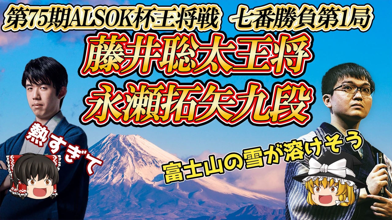 ▼概要 棋戦 :第75期ALSOK杯王将戦 七番勝負第1局 対局日時:2025年1月11-12日 主催 :毎日新聞社 スポーツニッポン新聞社 日本将棋連盟 特別協賛:ALSOK <a href="https://www.alsok.co.jp" target="_blank" rel="noopener nofollow">https://www.alsok.co.jp</a> 協賛 :囲碁将棋チャンネル <a href="https://www.igoshogi.net" target="_blank" rel="noopener nofollow">https://www.igoshogi.net</a> 立飛ホールディングス <a href="https://www.tachihi.co.jp" target="_blank" rel="noopener nofollow">https://www.tachihi.co.jp</a> 10秒チャージinゼリー <a href="https://www.morinaga.co.jp/in/jelly/" target="_blank" rel="noopener nofollow">https://www.morinaga.co.jp/in/jelly/</a> FUJIFILM <a href="https://www.fujifilm.com/jp/ja" target="_blank" rel="noopener nofollow">https://www.fujifilm.com/jp/ja</a> 名古屋鉄道 <a href="https://top.meitetsu.co.jp/" target="_blank" rel="noopener nofollow">https://top.meitetsu.co.jp/</a>